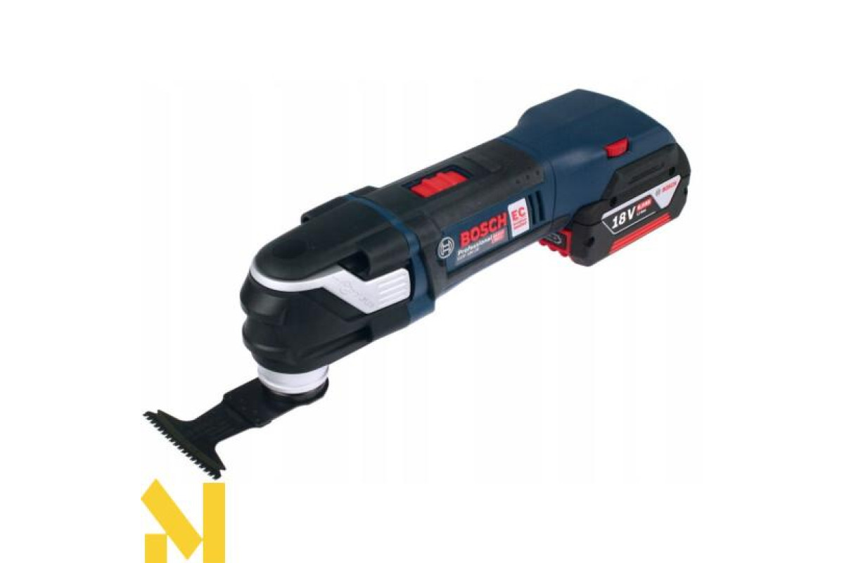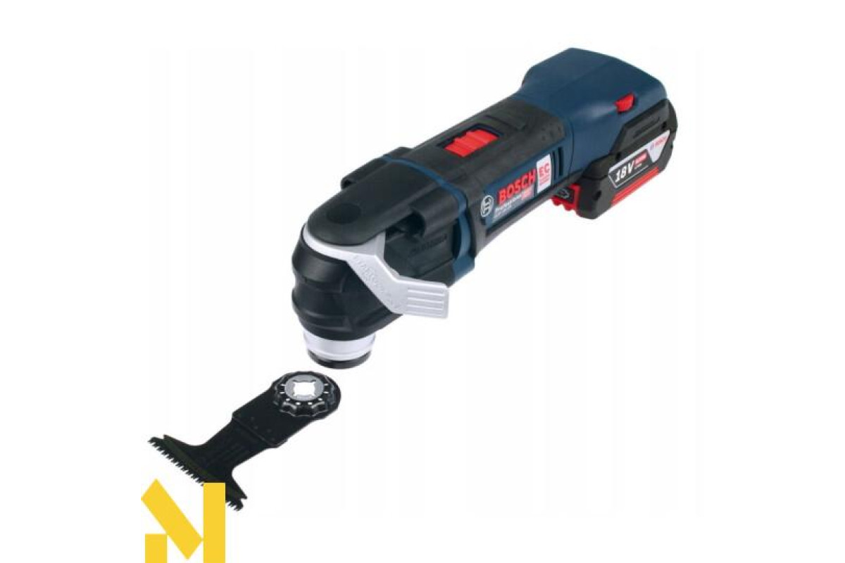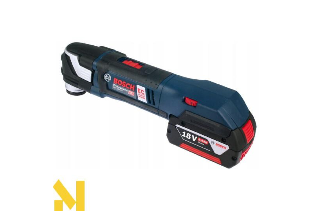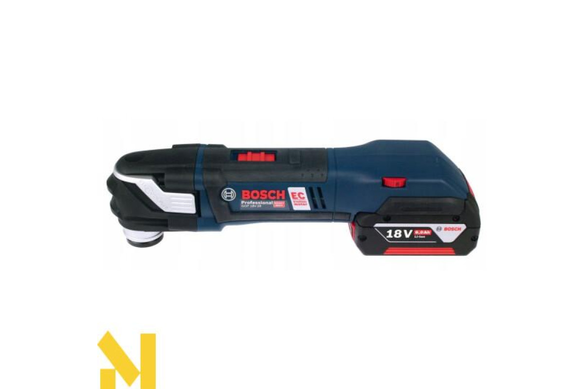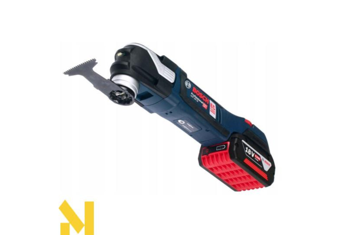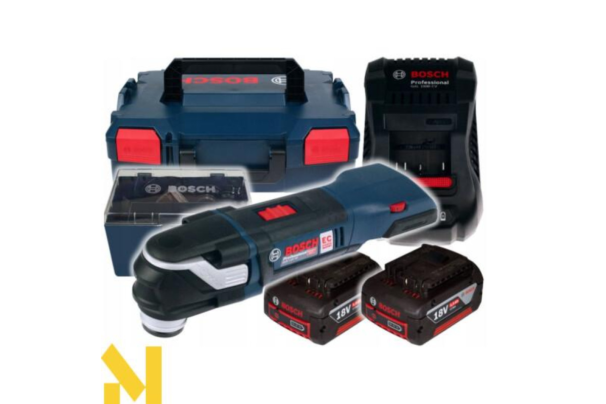 Мультитул Bosch GOP 18 V-28, що працює на 18 В літій-іонному 5,0 А*год акумуляторі, з безінструментального заміною насадок Starlock і StarlockPlus. Кут коливань 1,4 градуса в право і вліво. Частота коливань встановлюється від 8000 до 20000 кол/хв. Безщітковий двигун. Світлодіодна підсвітка. Доставляється в картонній упаковці з двома акумуляторами 5,0 А * год, зарядним пристроєм AL 1860 CV, Starlock шліфпластина, 5 шліфлистів, занурювальним направляючою шиною по дереву і металу StarlockPlus BIM PAIZ 32 APB.