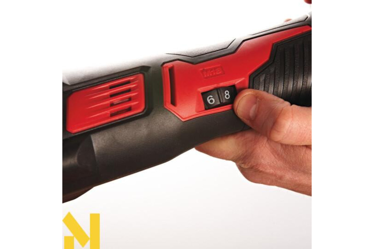 Регульована швидкість (12,000 - 18,000 об/хв) та кут осциляції 3.4° вліво/вправо забезпечує професійну роботу в таких матеріалах, як метал, дерево та пластик.