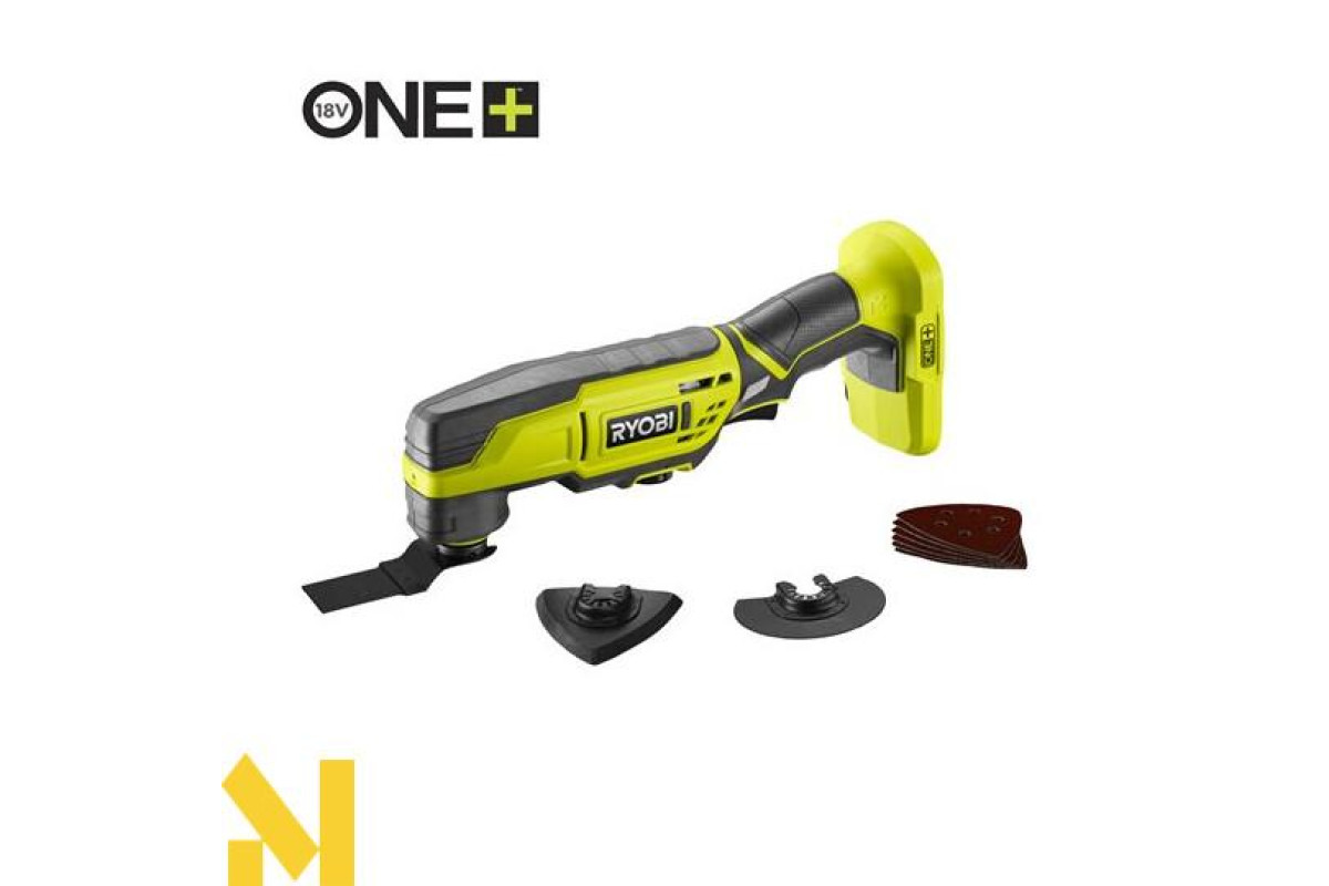 Багатофункціональний інструмент Ryobi ONE+ R18MT3 призначений для різання та шліфування гіпсокартону, дерева, металу, пластику тощо.