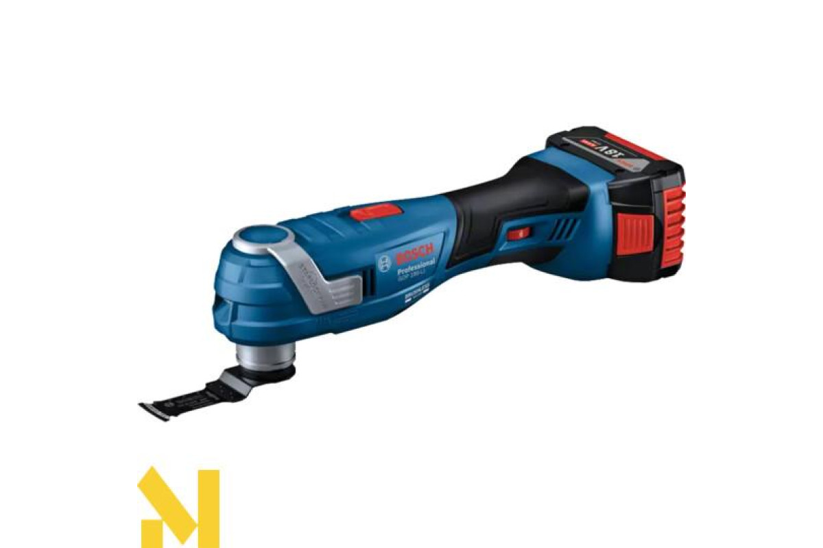 Ідеальний універсальний різак для одноетапного виконання робіт. Використовується для прямого або фігурного розрізання різних матеріалів у ремонтних і будівельних роботах. Живиться пристрій від акумулятора напругою 18 В. Розвиває швидкість на холостому ходу від 10000 до 20000 об/хв, кут коливань зліва і справа – 1,7°. При пилянні сегментним диском значення вібрації становить 3 м/с², при роботі прорізним полотном – 2,9 м/с². Рівень шуму апарата досягає 88 Дб. Важить модель 1,2 кг без акб.