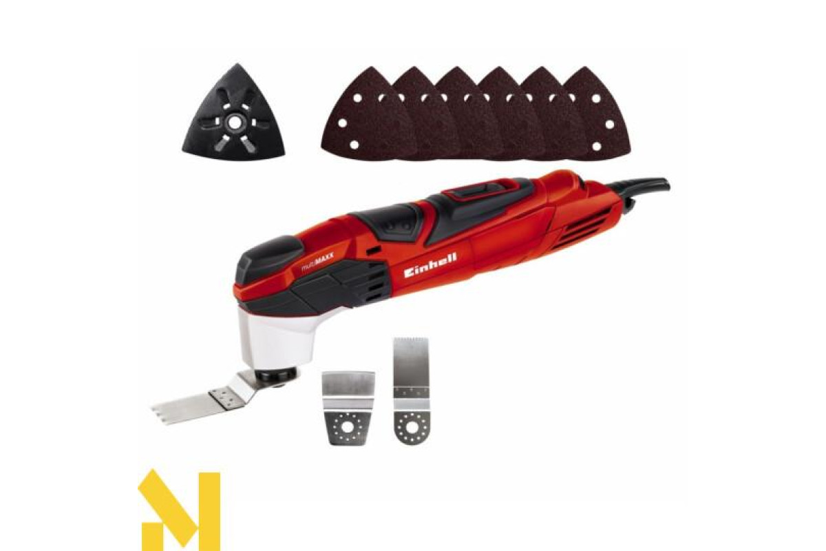 Мультитул Einhell TE-MG 200 E - мережевий багатофункціональний інструмент реноватор, застосовуваний для заготовок з дерева, металу, пластику, гіпсокартону або плитки. Мультитул Einhell TE-MG 200 E в своєму корпусі, завдяки різнопланових насадок, що поставляються в базовій комплектації, поєднує багатофункціональний набір таких інструментів, як: реноватор, шліфмашина, різак. Завдяки компактній формі, реноватор Einhell TE-MG 200 E вважається дуже зручним і маневреним для застосування у важкодоступних місцях. Принцип роботи мультитула Einhell TE-MG 200 E полягає у вібрації використовуваних насадок, а не обертання їх навколо власної осі.