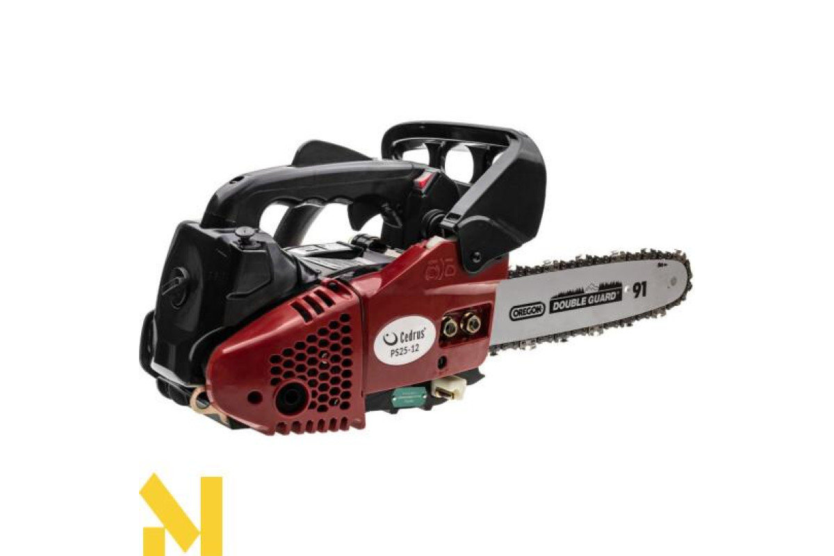 Бензинова бензопила Cedrus PS25-12 для заготівлі дров, обрізання гілок в саду або догляду за деревами в лісі. Оснащена надійним двотактним двигуном 1,1 к.с. та карбюратором Walbro. Спеціальна амортизація ізолює ручку від двигуна, щоб мінімізувати надмірні вібрації, що виникають під час роботи двигуна.
