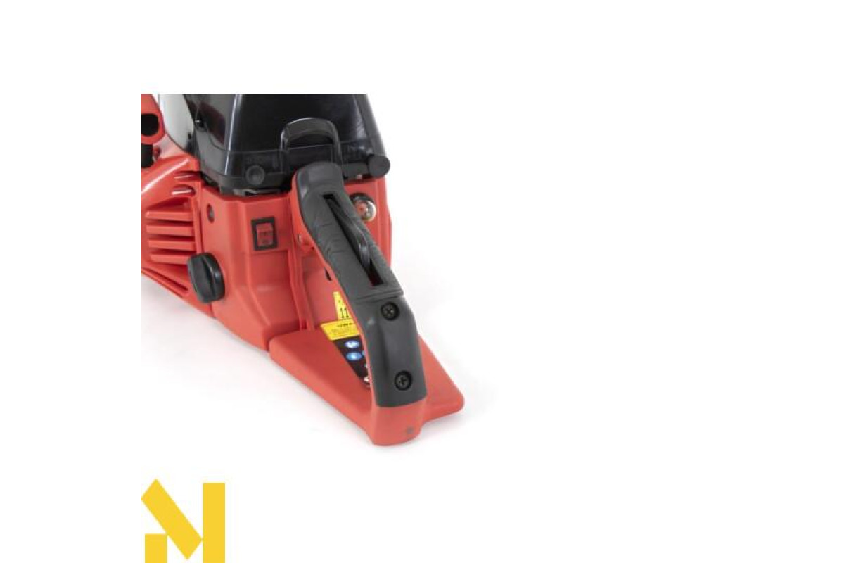 Бензопила Faworyt RG5620-B7 оснащена запобіжним гальмом, який зупиняє ланцюг при виявленні віддачі, мінімізуючи ризик отримання травми. Крім того, антивібраційна система знижує вібрацію, що підвищує комфорт використання під час тривалої роботи. Металеве кріплення ручки стартера забезпечує довговічність і надійність при кожному запуску.