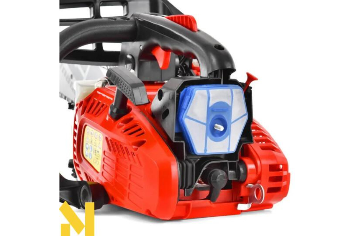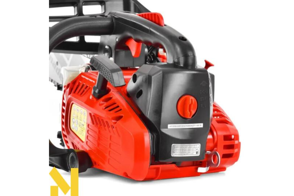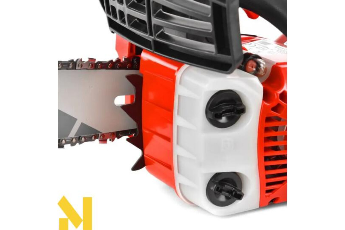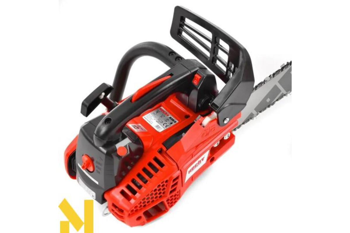 Маленька бензопила з прозорим паливним баком оснащена двотактним двигуном потужністю 0,75 кВт з об'ємом 25,4 см3. Це чудовий помічник для різання матеріалів. Перевагою бензинового двигуна є незалежність від підключення до електромережі – з пилкою можна дістатися до важкодоступних місць. Завдяки використаним якісним матеріалам досягається гарний баланс. Включені вбудовані елементи, такі як запобіжні гальма ланцюга, фіксований зубчастий упор для та гачок для підвішування пилки на поясі. Пила поставляється з якісною шиною Hecht довжиною 30 см і ланцюгом 3/8", 1,3 мм. Завдяки своїм розмірам без ланцюга та шини має невелику вагу всього 2,9 кг, вага всієї пили - 3,5 кг.