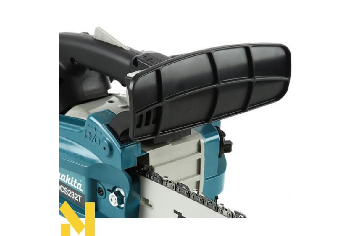 У бензопилці MAKITA DCS232T права рукоятка розміщена зверху, якраз над центром тяжіння. Це значно спрощує роботу. Таким чином, оператор може працювати однією рукою, а іншою - утримуватися сам. Запропонована модель не тільки легка, але і компактна. Навіть з прикріпленою шиною, вона легко поміститися в дорожню сумку або рюкзак. Отже, застосовувати таку пилку можна не тільки в домашніх умовах, але й на рибалці, полюванні.