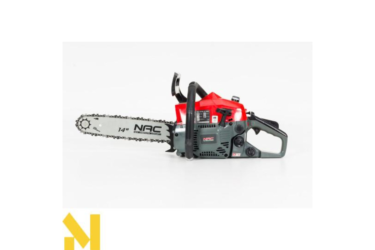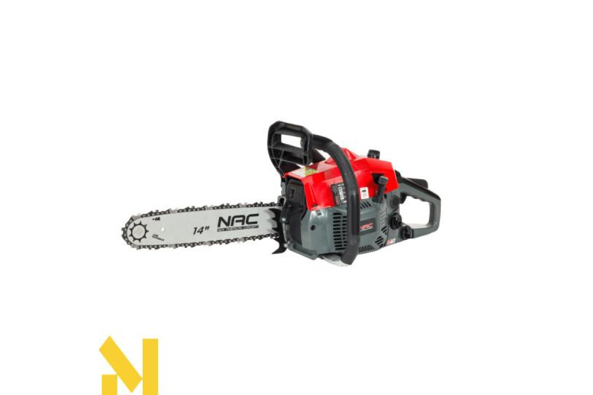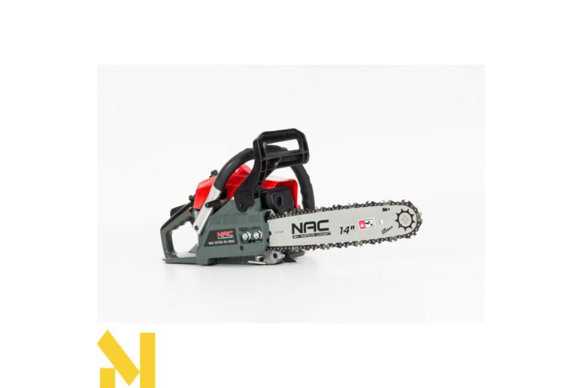 Бензинова ланцюгова пила NAC CST38-35-06AC з направляючою шиною 14″ оснащена двигуном об'ємом 38 см3 з максимальною потужністю 1,77 к.с., який чудово підійде для всіх видів робіт у саду, на фермі, на присадибній ділянці та на будівельному майданчику.