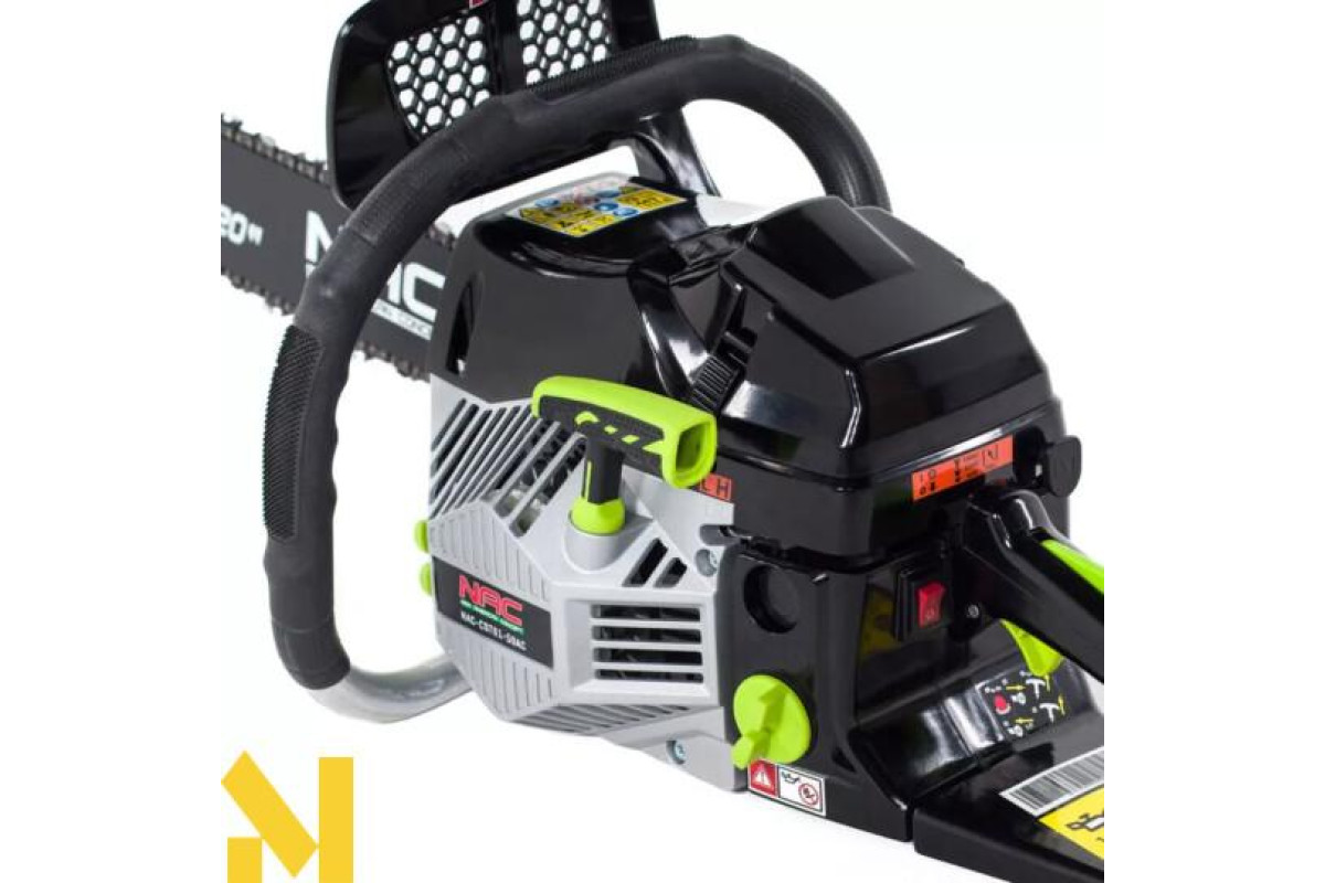 Бензинова ланцюгова пилка NAC CST61-50AC з шиною 20″ оснащена двигуном об'ємом 61,5 см3 з максимальним моментом, що крутить, 3,3 Нм, що відмінно підійде для всіх видів робіт в саду, на фермі, на ділянці і на будівельному майданчику.
