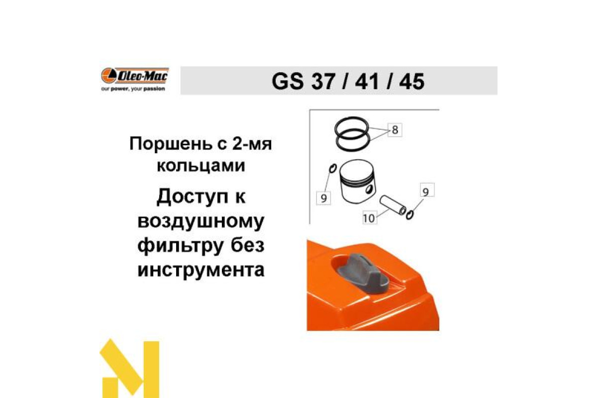 Бензопила Oleo-Mac GS 41 - нова модель 2018 року, з поршневим нового покоління забезпечує більшу потужність, істотно збільшений ресурс. Потужність двигуна досягається в 2,6 к.с. або 1,9 кВт. Пильна гарнітура Орегон доступна з кроком різу 0.325.