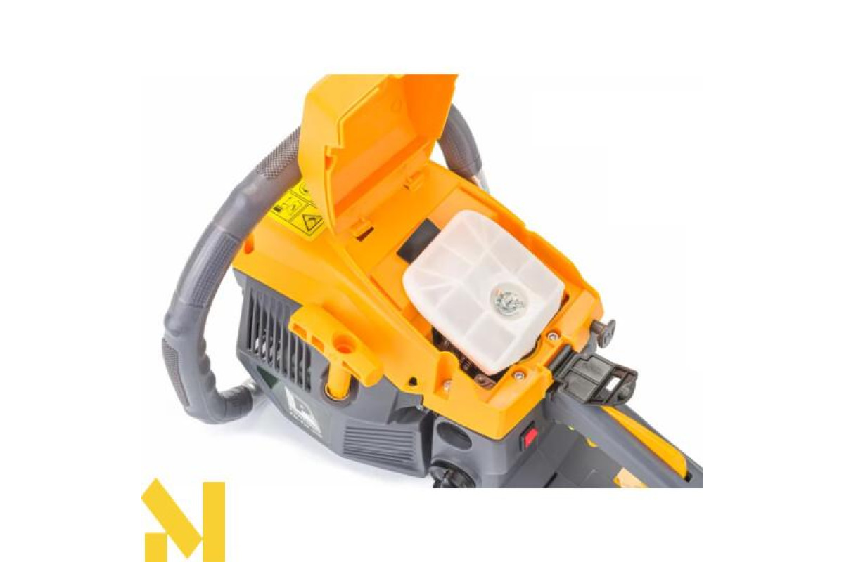 Плаваюча зірочка полегшує установку ланцюга і підвищує стійкість до перевантажень. Пила оснащена антивібраційною функцією, запобіжним гальмом, муфтою та автоматичним змащенням ланцюга.