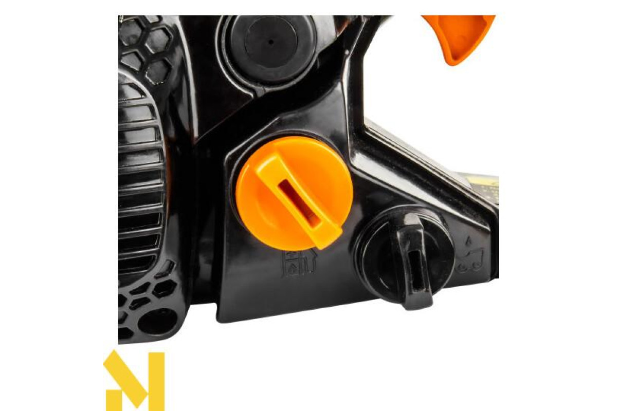 Ця бензопила рекомендована тим, хто потребує ефективного і високопродуктивного інструменту з тривалим терміном служби. За рахунок того, що органи управління розміщені на корпусі виключно ергономічно, застосовувати пристрій можна і в обмеженому просторі, і на висоті. Всі необхідні елементи вже включені в заводську комплектацію пристрою, тому приступити до роботи ви зможете відразу після отримання покупки.