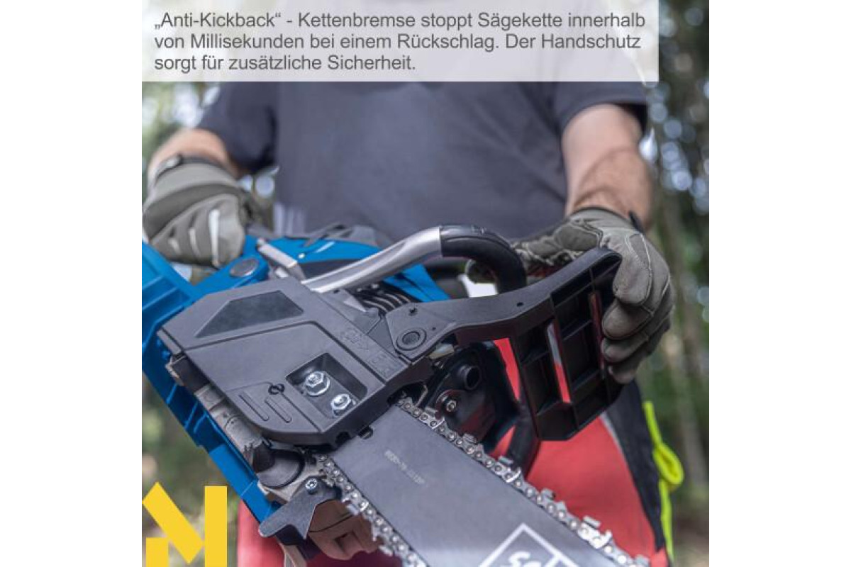 Бензинова бензопила Scheppach PCS56E підходить для всіх видів лісових робіт, для обрізки гілок або підстригання чагарників. Завдяки високоякісній шині ProCut 20"/51 см, швидкості різання 22 м/с та потужному 2-тактному бензиновому двигуну 3,1 к.с./2,3 кВт гарантовано швидкий прогрес у роботі. Потужна бензопила легко запускається завдяки системі подвійного запуску з електричним запуском натисканням кнопки та додатковим стартером. Захист від віддачі та захист руки забезпечують безпечну роботу. Ручка з обхватом також робить пилку універсальною.
