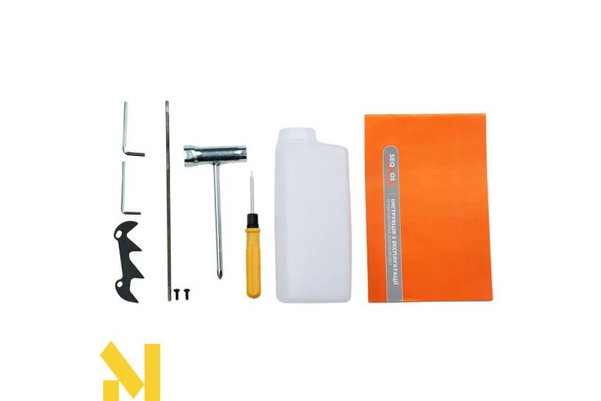 Для безпечної роботи пилка оснащена механічним гальмом ланцюга, запобіжником клавіші старту та щитком для захисту рук.