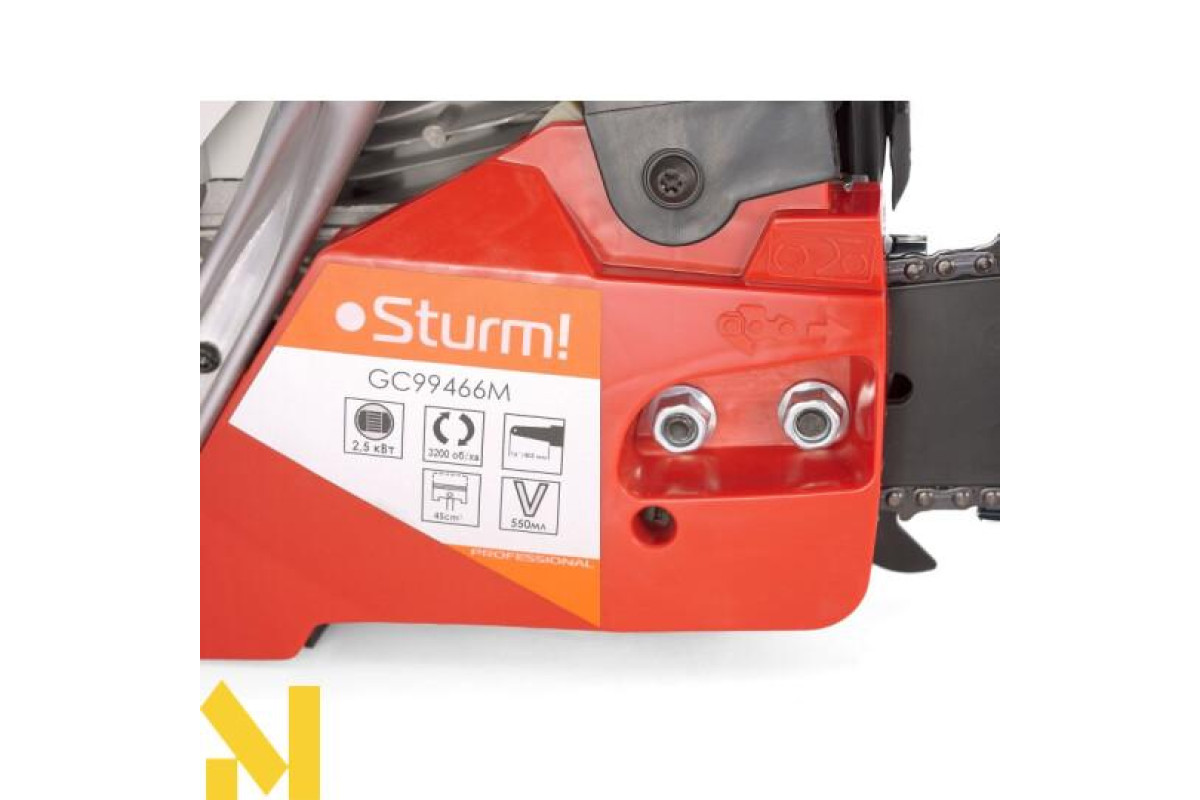 Комплектація | Бензопила Sturm GC99456; Ланцюг Oregon - 1 шт .; Шина Oregon - 1 шт .; Пластиковий захисних кожух - 1 шт .; Викрутка - 1 шт .; Торцевої ключ - 1 шт .; Мірний стакан для приготування паливної суміші - 1 шт .; Надфиль - 1 шт .; Інструкція по експлуатації - 1 шт. |