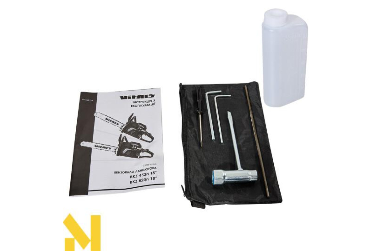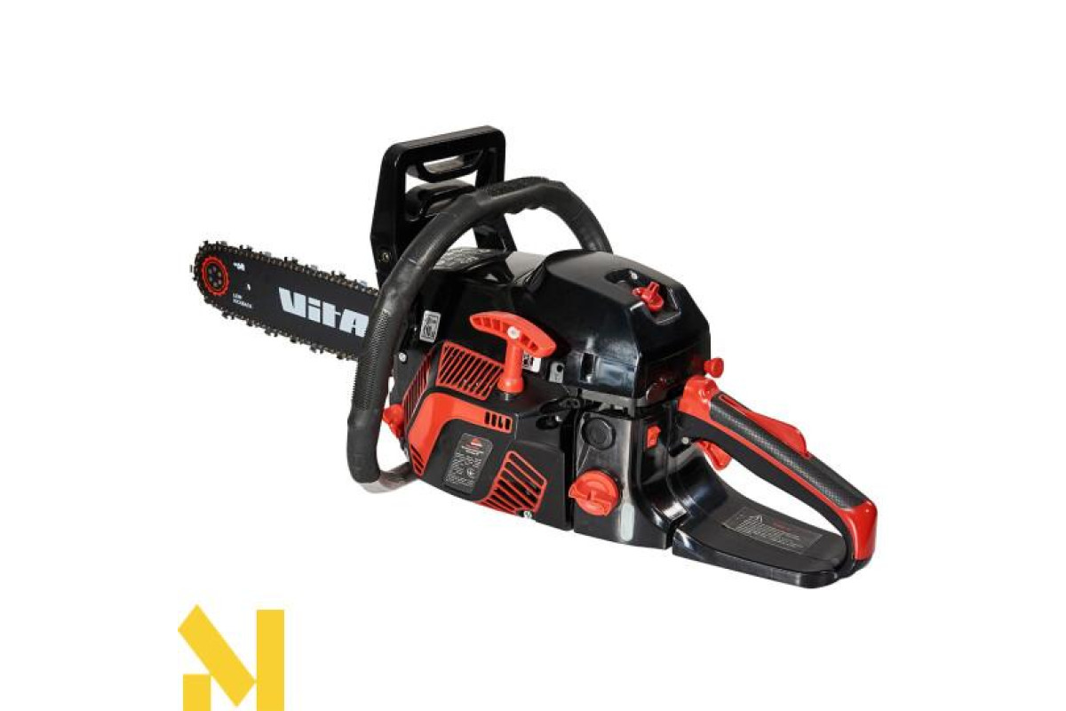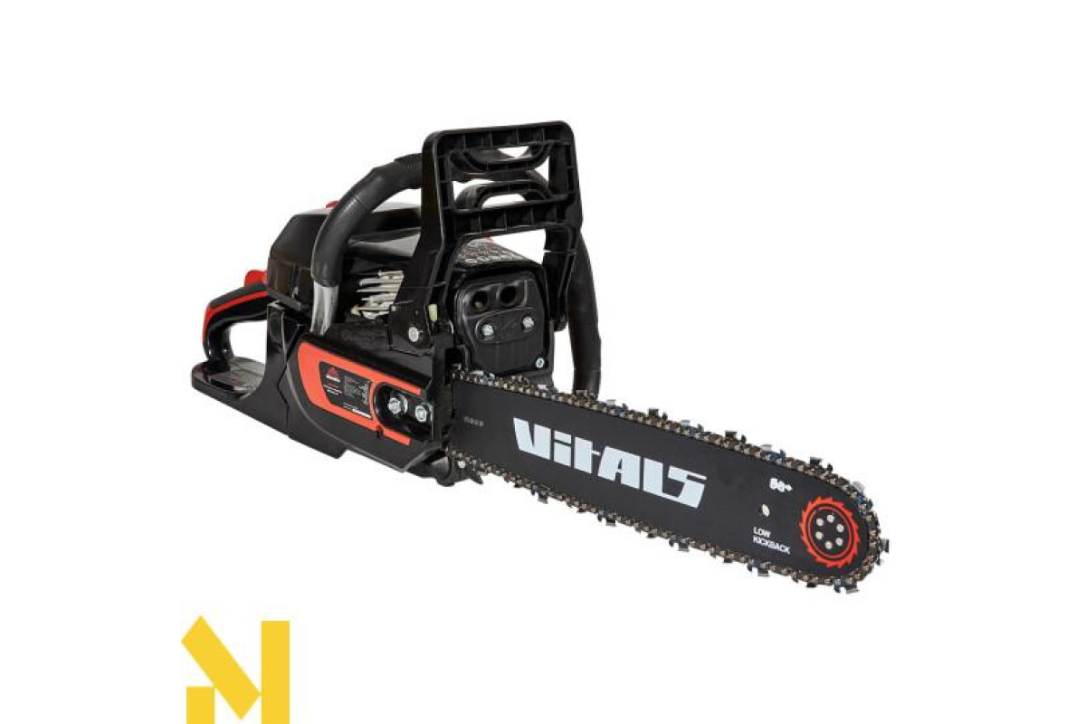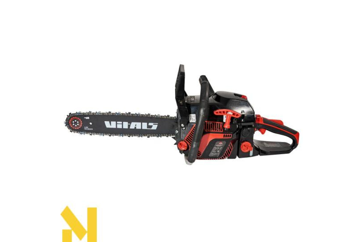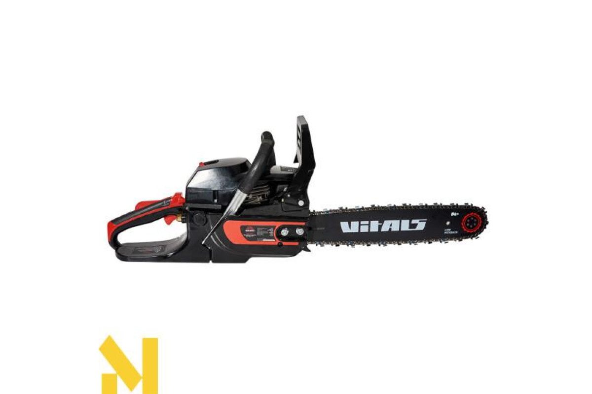 Бензопила ланцюгова Vitals BKZ 453n 15" призначена для швидкої і ефективної обрізки кущів і гілок у садку, а також спилювання дерев та розпилювання їх на колоди. Вона поєднує в собі високу якість, надійність у роботі, простоту в процесі експлуатації й легке обслуговування. Дана модель оснащена економним двотактним бензиновим двигуном. Змащення ланцюга у процесі роботи — безперервне, автоматичне за допомогою плунжерного безклапанного насоса з регулюванням продуктивності. Насос і мастильний бачок для змащення ланцюга розташовані у корпусі виробу. Двотактний двигун виробу працює на паливній суміші автомобільного бензину та мастила для двотактних двигунів. Регулювання швидкості двигуна (шляхом дроселювання) та налаштування режиму пуску холодного двигуна здійснюється карбюратором. Запалювання паливної суміші у циліндрі здійснюється іскровою свічкою. Охолодження двигуна – конвективне, потоком повітря від крильчатки.
