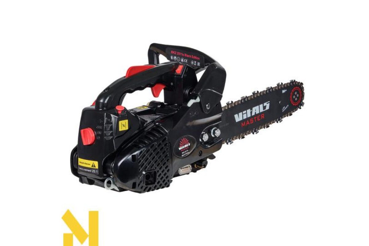 Бензопила ланцюгова Vitals Master BKZ 2511s Black Edition — компактна якісна бензопила, представляє напівпрофесійну серію бензопил і призначена для швидкого розпилювання свіжої, сухої й мокрої деревини різної товщини та конфігурації, деревостружкових плит, заготівлі дров із колод невеликого й середнього діаметрів. Пила стане незамінним помічником під час обрізання дерев або на невеликому будівництві.