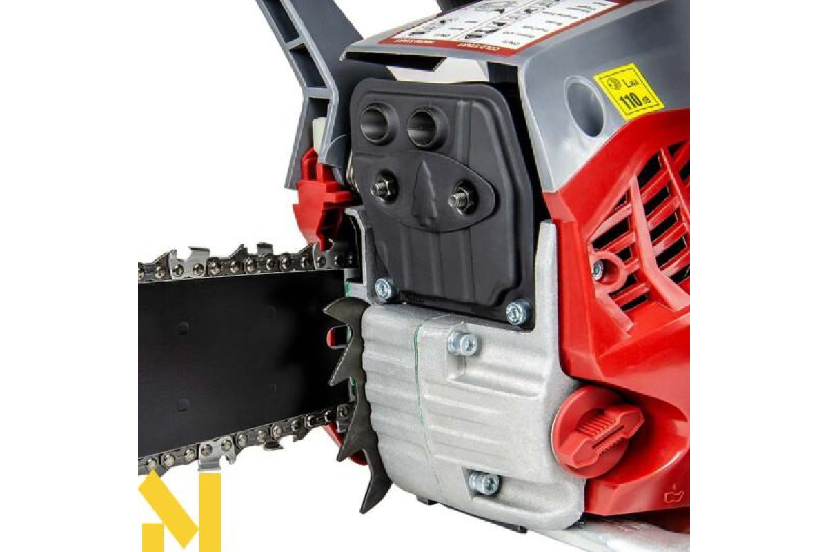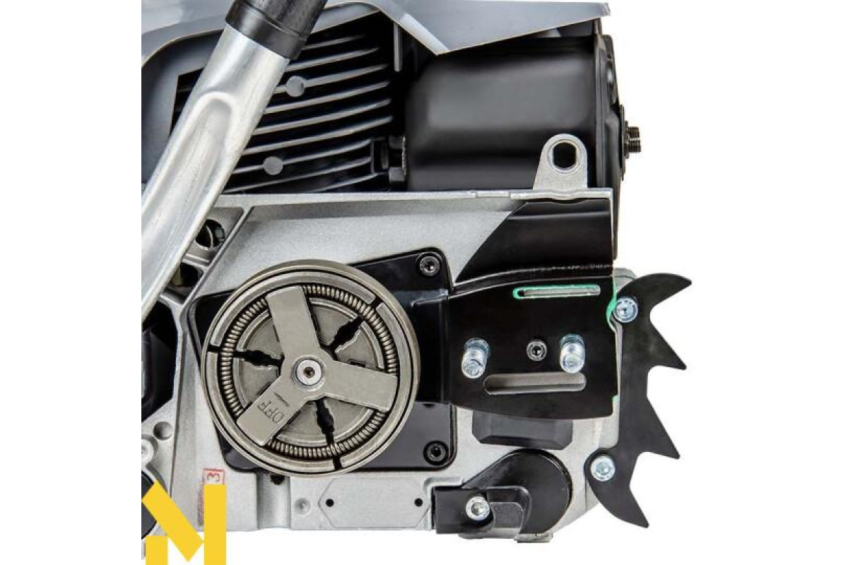 Зручне, бокове розташування натягувача ланцюга полегшує і робить натяг ланцюга безпечнішим, виключаючи контакт рук оператора з пильною гарнітурою і зубчастим упором.