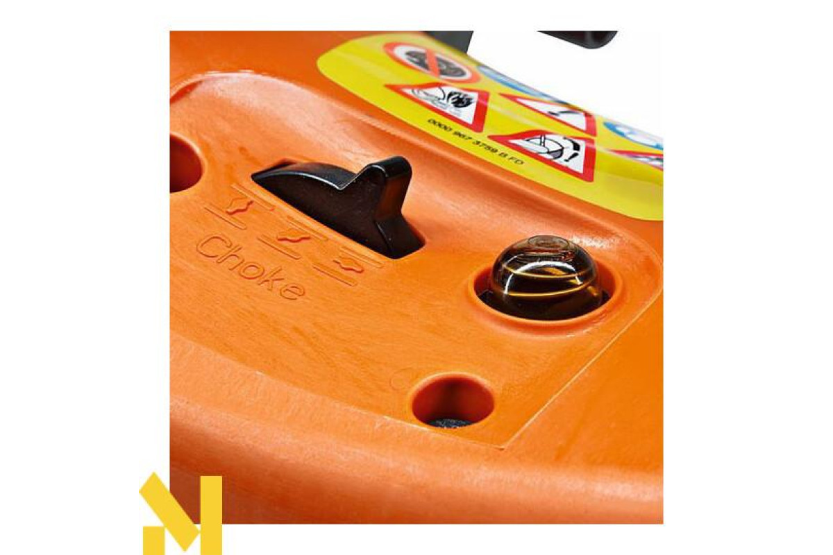 Компенсатор STIHL – регулюючий орган у карбюраторі – запобігає перенасиченню суміші при забрудненні повітряного фільтра. Таким чином, протягом тривалого часу потужність залишається постійною. Фільтр вимагає очищення, коли забито 80% його поверхні. Це дозволяє довго працювати без перерви. Ручний паливний насос (випускний клапан)