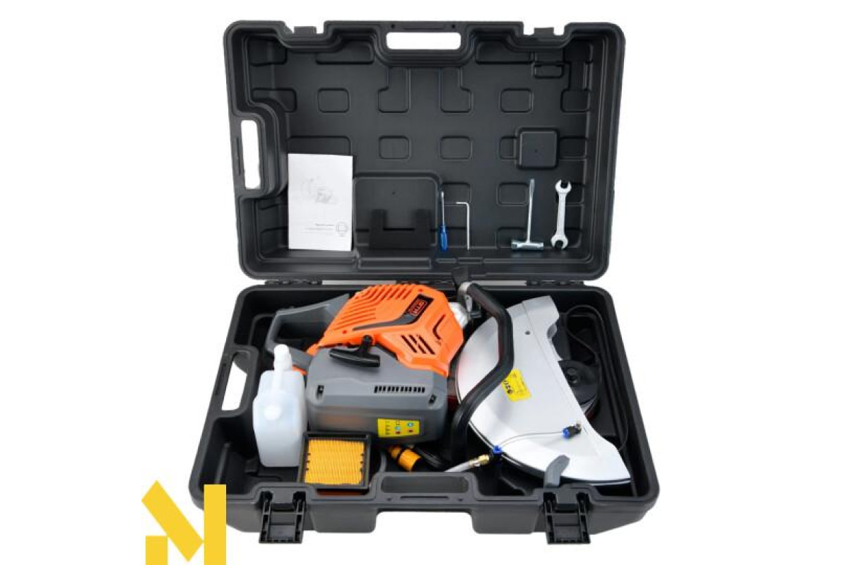 Швонарізчик GTM GT7208S - будівельне обладнання для різання усадочних, деформаційних, ізоляційних, температурних швів, штроб для електропроводів, обрізки кромок блоків, демонтажу невеликих конструкцій. Ручний швонарізчик може підключаться до зовнішньої системи водяного охолодження.