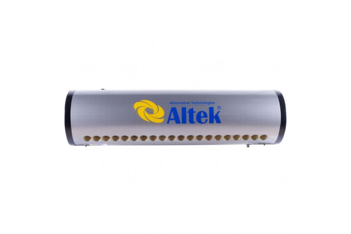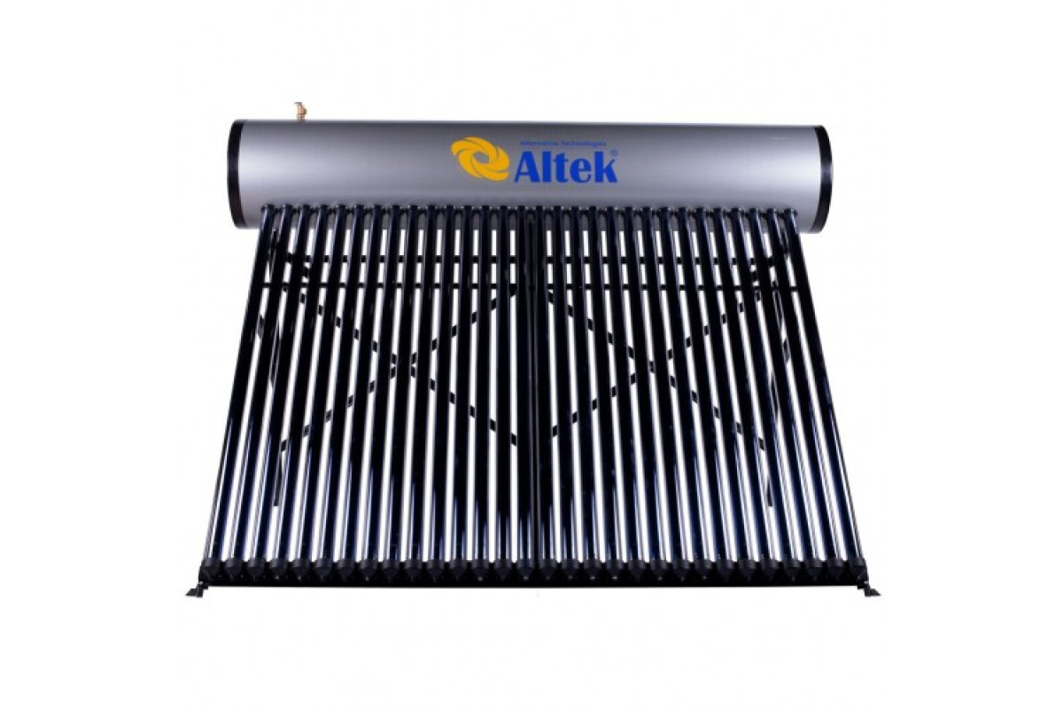 Сонячний колектор Altek SD-Р-30 складається з високоякісних елементів, бак з нержавіючий стали 3SUS316L. Термосифонного безнапірний сезонний водонагрівач набраний з окремих вакуумних трубок. Енергія сонячного випромінювання поглинається абсорбером і перетворюється в теплову і нагріває воду, а завдяки ефективному селективного покриття збільшується ефективність роботи сонячного колектора. Дана система працює зі вільною циркуляцією теплоносія. Вакуумна трубка конструктивно складається з двох скляних колб, з простору між ними викачане повітря, що знижує втрату тепла. Основні елементи конструкції сонячного колектора – це накопичувальний бак (він же теплообмінник) і панель, де розміщені вакуумні трубки. Головною відмінністю геліосистеми серії SD-P є особлива конструкція – інтегрований внутрішній бак (бак в баку), що виконує роль теплообмінника. Бак системи складається з двох ємностей: внутрішній бак об’ємом 70л знаходиться всередині зовнішнього і служить сховищем гарячої води, яка знаходиться там під тиском. Основний бак об’ємом 200л заповнений водою, яка нагріває внутрішній бак. Весь матеріал підданий антикорозійній обробці. Трубчастий сонячний вакуумний колектор Altek оснащений ефективними двошаровими та удароміцними вакуумними трубками.