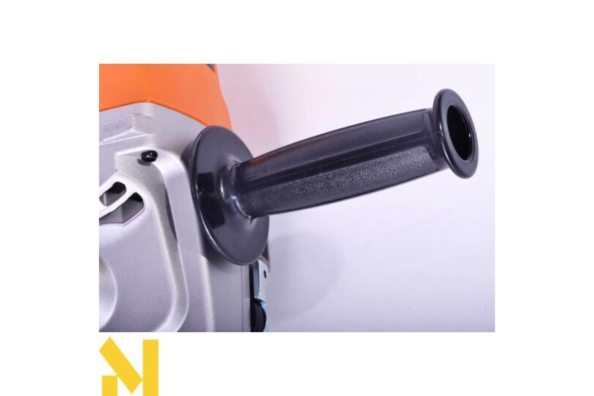 Комплектність шліфувальної машини доповнює, крім основної, ще одна ручка. Вона виготовлена з гуми та відмінно зменшує вібрації при роботі. Рукоятка має універсальне кріплення у трьох позиціях. Тому, шліфувальною машиною зручно користуватися як правше, так і людям з робочою лівою рукою.