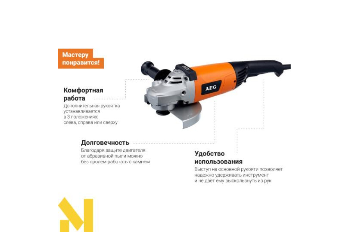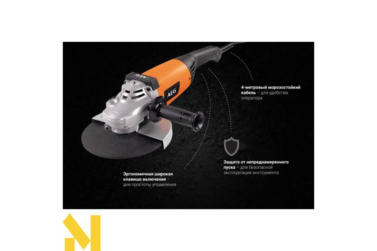 Кутова шліфувальна машина AEG WS 2200-230DMS - це професійний електроінструмент з двигуном потужністю 2200 Вт, сконструйований спеціально для відрізних та шліфувальних робіт. Цю модель можна використовувати для робіт не тільки з металом, але і з каменем, оскільки вона має захист двигуна від абразивного пилу.