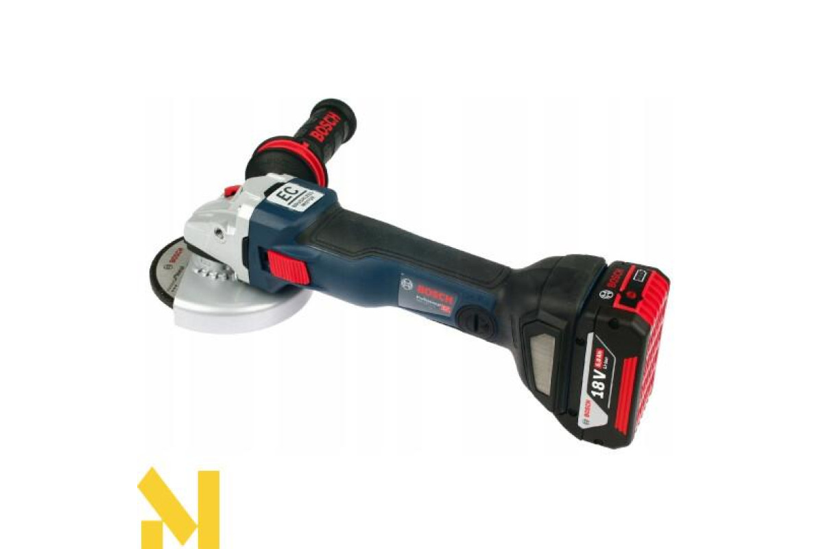 - Болгарка Bosch GWS 18V-10 C працює від Li-Ion 18 В акумулятора, і по потужності порівнянна з мережевою тисячі Вт.