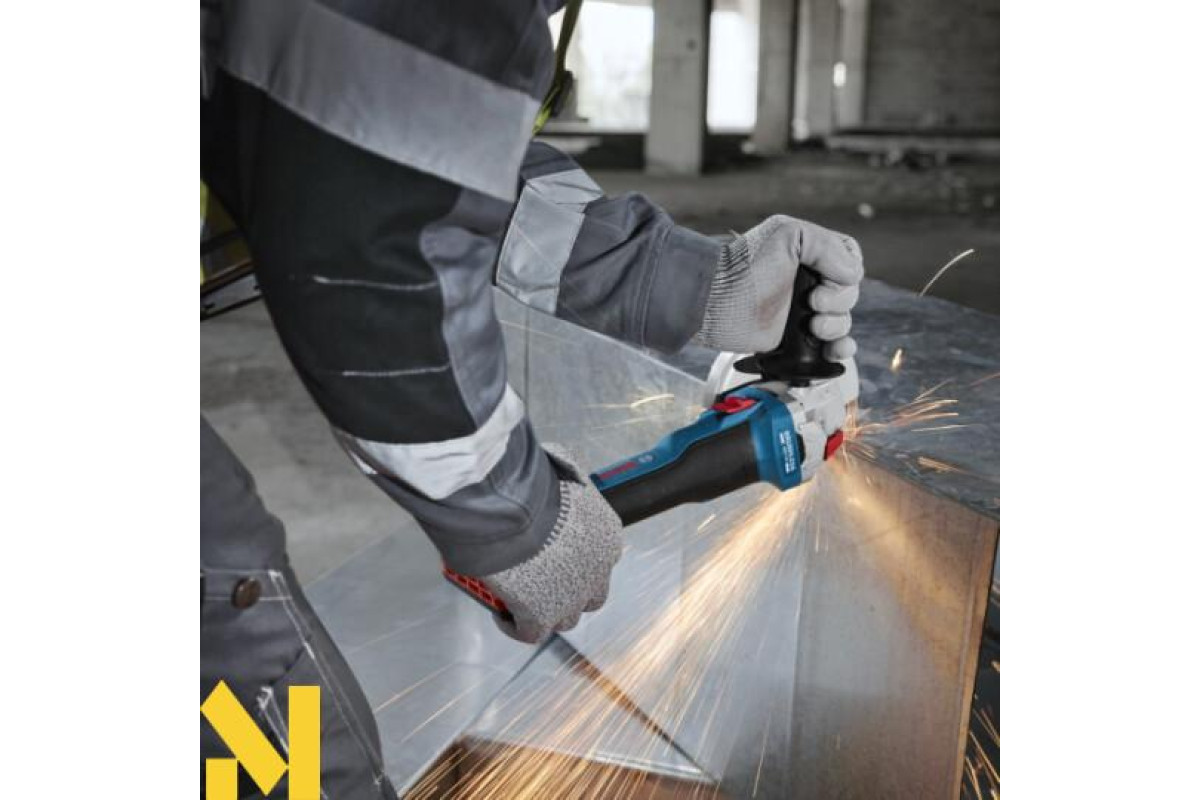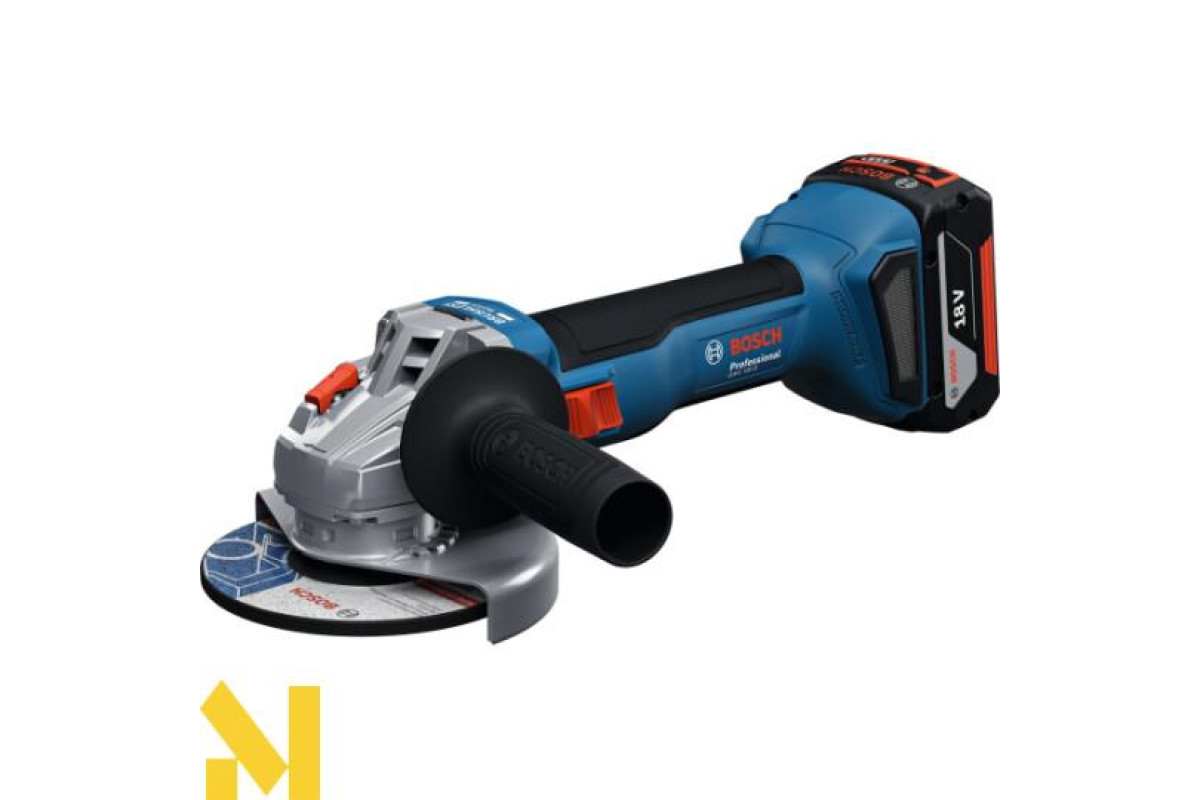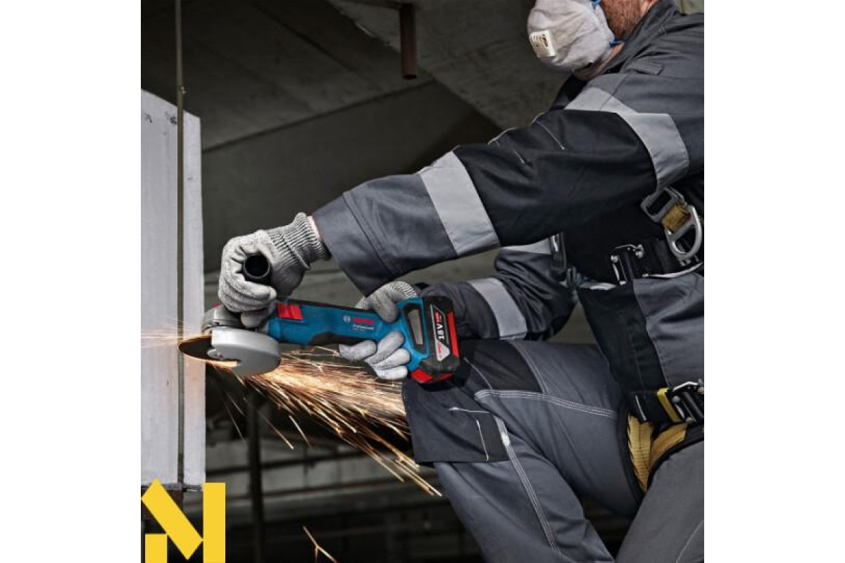 Bosch Professional GWS 18V-8 — це компактна і продуктивна акумуляторна кутова шліфувальна машина, що забезпечує потужність, еквівалентну 800-ватному мережевому інструменту.