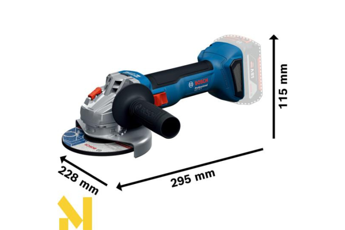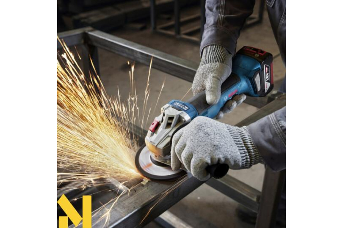 Bosch Professional GWS 18V-8 — це компактна і продуктивна акумуляторна кутова шліфувальна машина, що забезпечує потужність, еквівалентну 800-ватному мережевому інструменту.