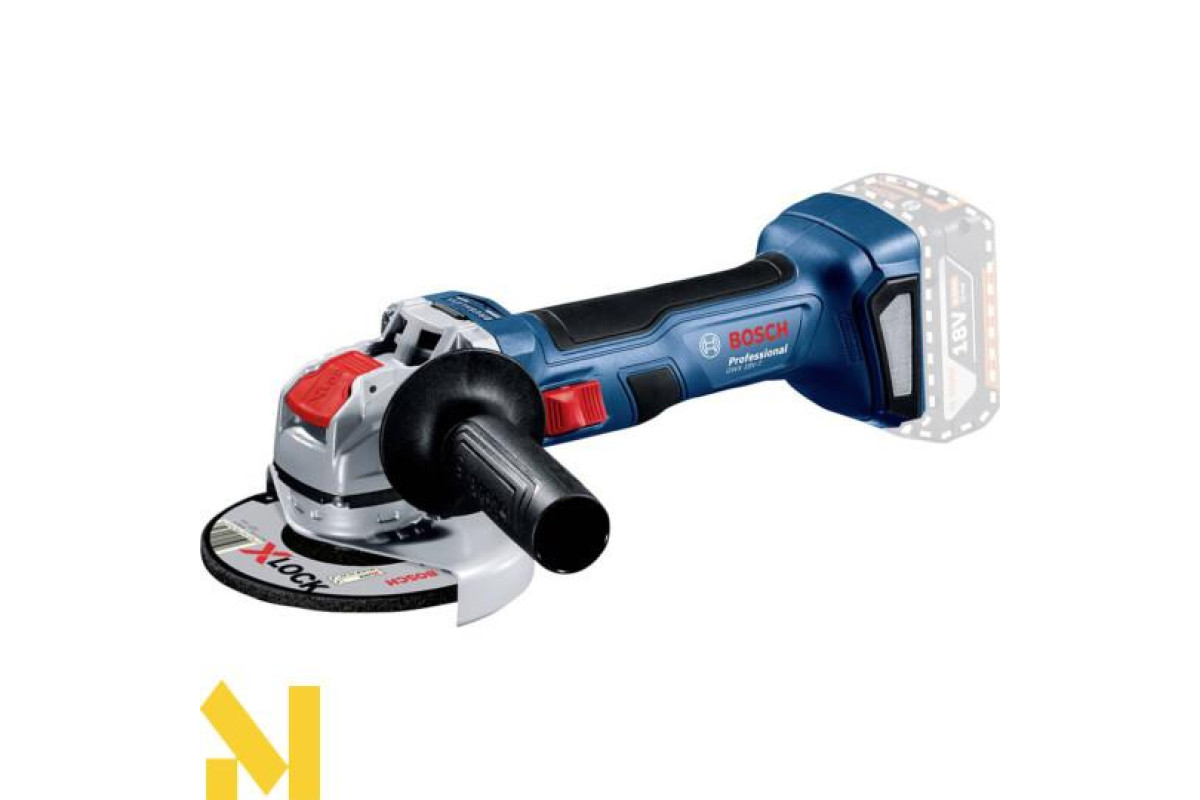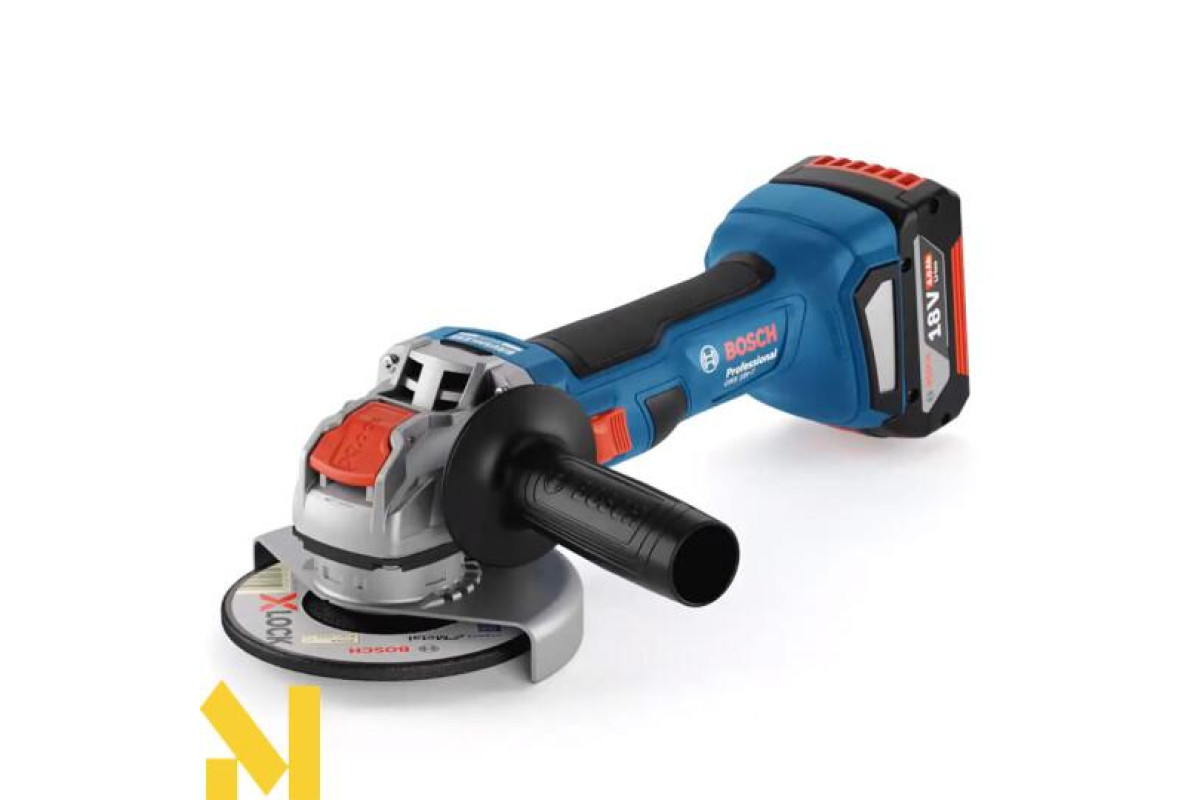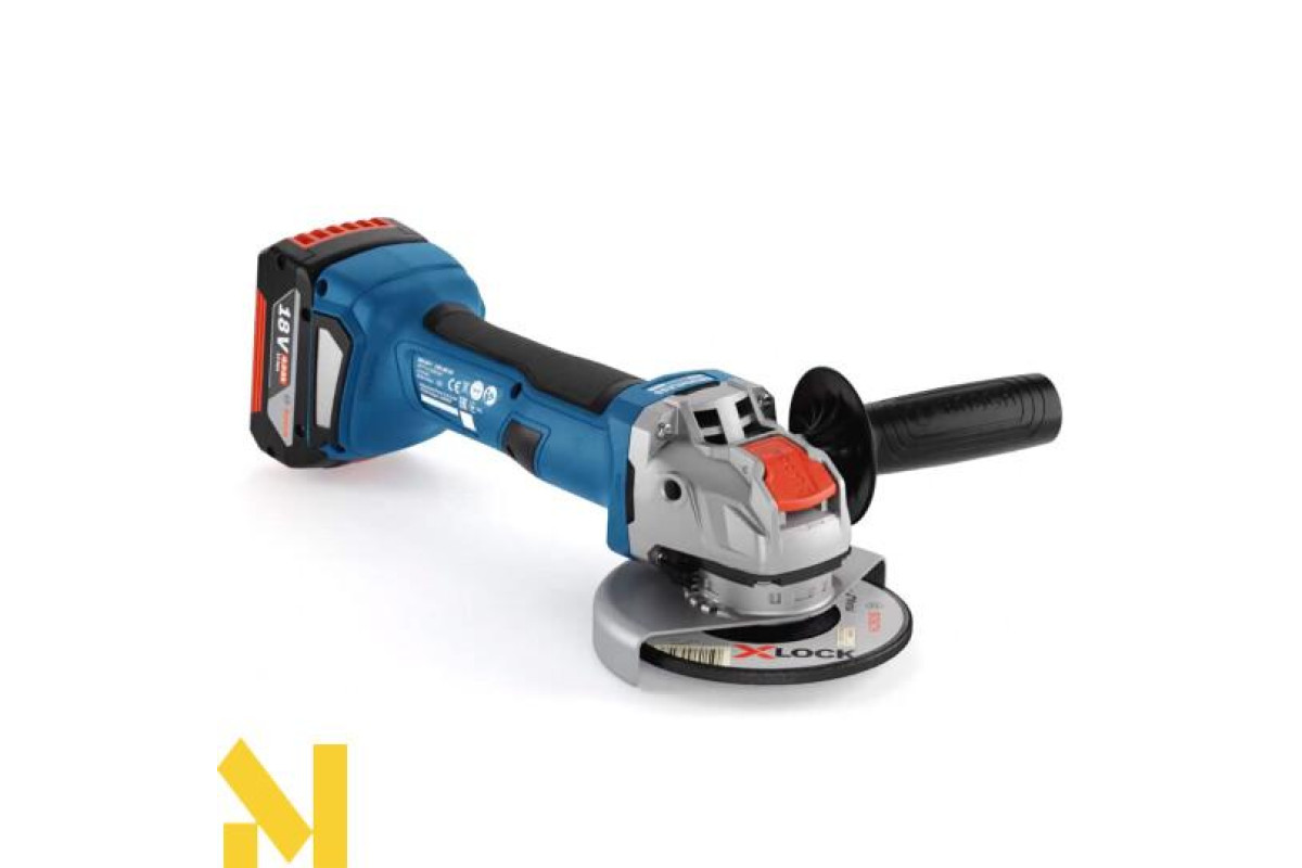 На болгарку акумуляторного типу (18 В) витратні матеріали швидко закріплюються системою X-LOCK