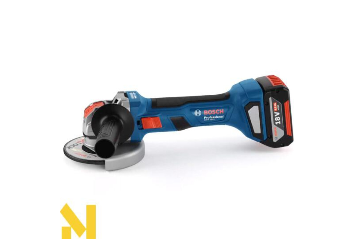 Акумуляторна кутова шліфувальна машина Bosch Professional GWX 18V-7 ідеально підійде для різання, шліфування та свердління. Кількість обертів 11000 об/хв (максимальні). Діаметр круга - 125 мм, кріпиться за допомогою системи X-LOCK. Вага тушки (без акумулятора) - 2.3 кг.