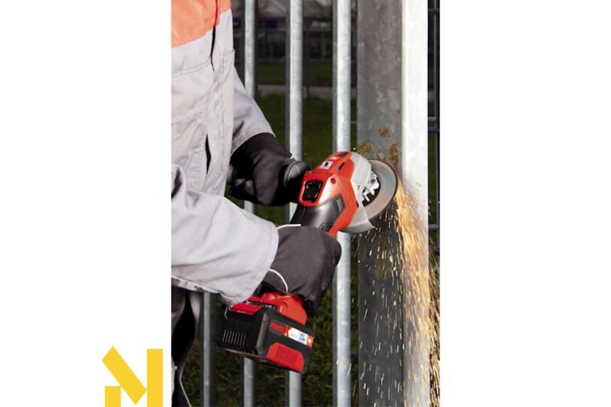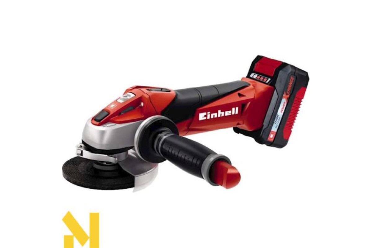 Кутова шліфувальна машина EINHELL TE-AG 18 Li Kit (4431113) виконана в звичному яскраво-червоному кольорі. Зверніть увагу, що каркас шліфувальні машини виготовлений з матеріалів найвищої якості. Завдяки цьому виробникові вдалося досягти максимального рівня міцності і надійності його конструкції. У той же час такі характеристики дозволяють майже повністю виключити можливість серйозних механічних пошкоджень при випадкових побутових ударах. Відзначимо, що апарат функціонально призначений для шліфработ по металу і каменю за умови використання належного шліфкруга. Граничний рівень безпеки оператора досягається завдяки наявності плавного пуску і захисного кожуха. Дизайн пристрою продуманий до найменших деталей. Так завдяки м'яким прогумованим накладок на основний рукояті забезпечується більш міцний хват. Крім того, присутність додаткової трьохпозиційним рукоятки гарантує ще більше зручності в процесі експлуатації, а також значним чином підвищує керованість. Крім того, в ній розміщений ключ для фланцевої гайки. Перегрів пристрою в ході функціонування навіть під час великих навантажень запобігає системою охолодження, яка представлена у вигляді спеціальних вентиляційних отворів на корпусі.