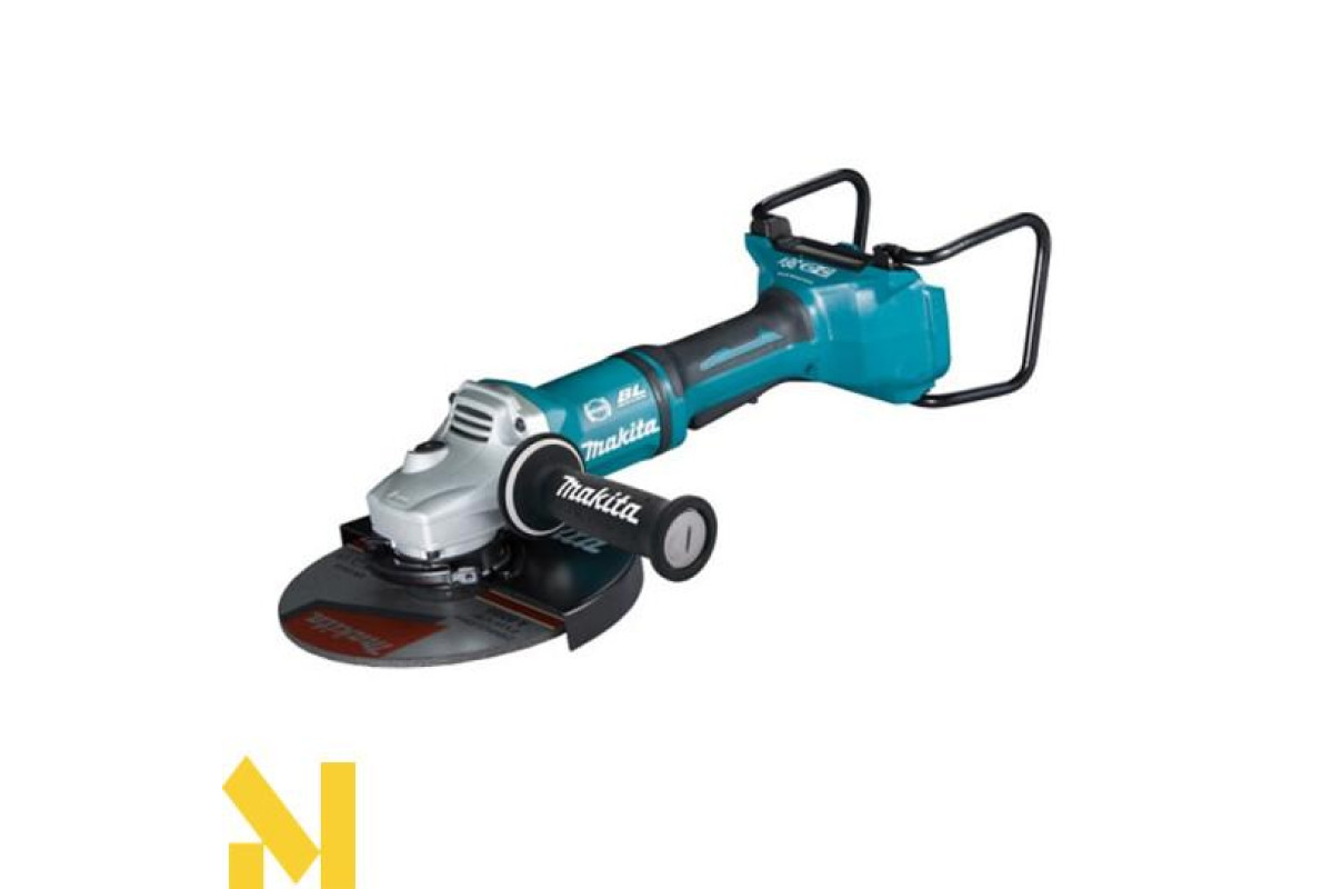 Makita DGA901ZU - це потужнa акумуляторна болгарка, з діаметром диска 230 мм і живленням від двох 18 В батарей. Болгарка має безщітковий двигун, який не потребує обслуговування. Електронна система обмеження струму з сигнальною лампою дає можливість безперервно користуватися болгаркою з одночасним контролем навантаження двигуна. Плавний пуск і захист від заклинювання підвищують безпеку робіт. Великий важіль перемикання з функцією блокування дуже зручний для користувача.