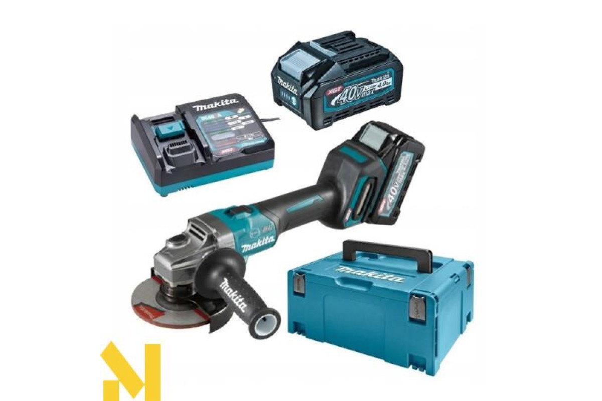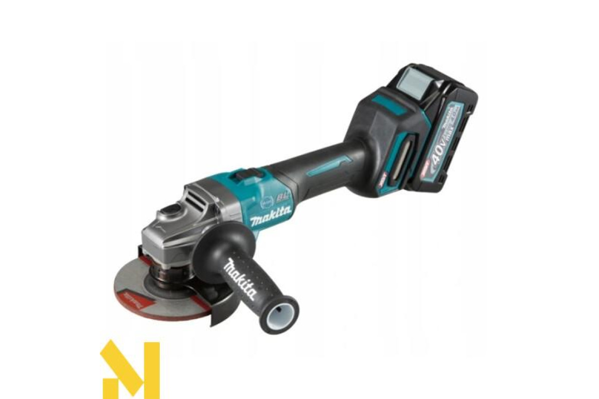 - Акумуляторна кутова шліфувальна машина з диском 125 мм для роботи у важких умовах з живленням від літій-іонної батареї 40 В max.