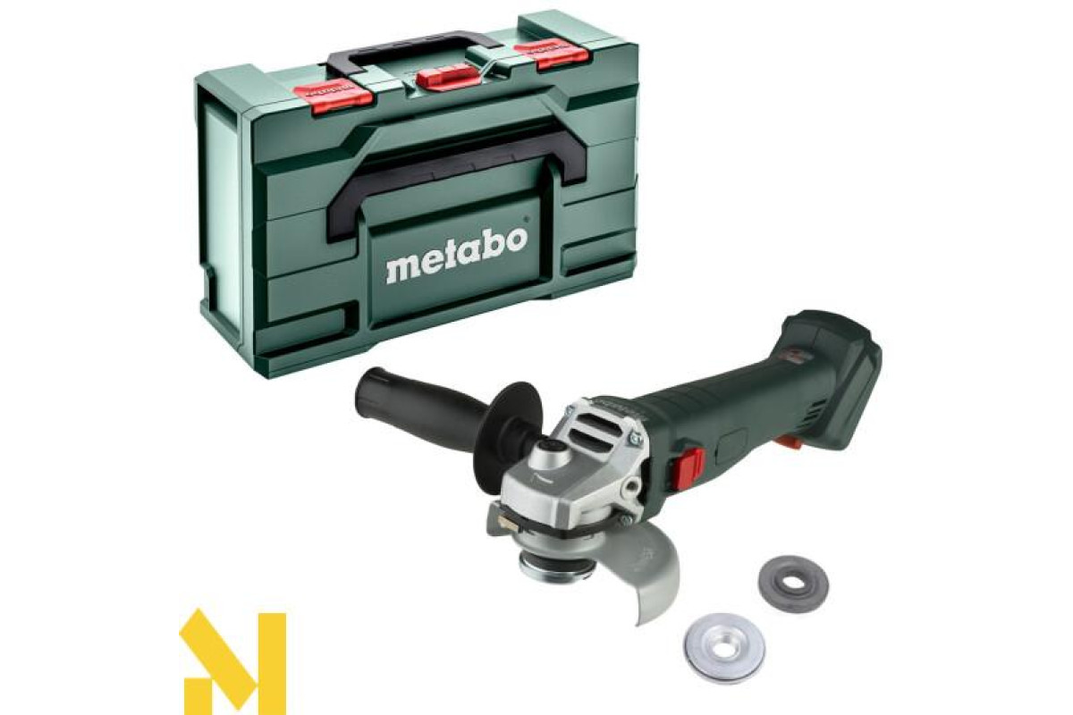 Каркас акумуляторної болгарки Metabo W 18 L 9-125 Quick MetaBox поставляється без акумуляторних блоків та зарядного пристрою, але в кейсі MetaBox 165 L. Завдяки своїм компактним розмірам та невеликому обхвату корпусу, дуже зручна в роботі.