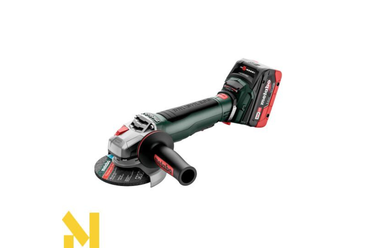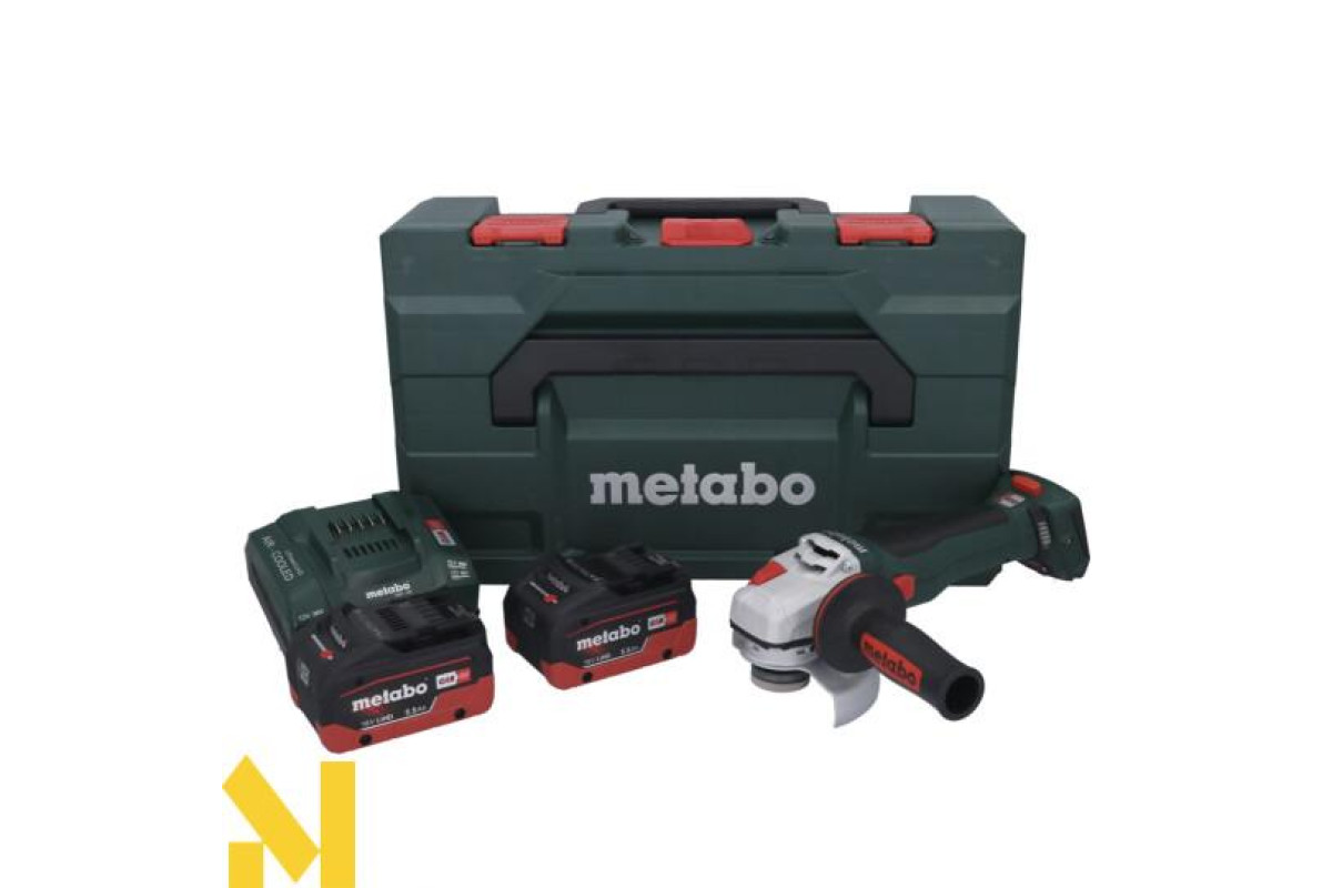 Аккумуляторная болгарка Metabo WPB 18 LT BL 11-125 Quick оснащена кнопкой включения без возможности фиксации в нажатом положении, что в паре с автоматической остановкой диска за пару секунд, обеспечивают очень высокий уровень безопасности во время работы. В данную комплектацию входят аккумуляторные блоки серии LiHD 5.5 Ач, скоростное зарядное устройство и кейсе MetaBox 165 L.