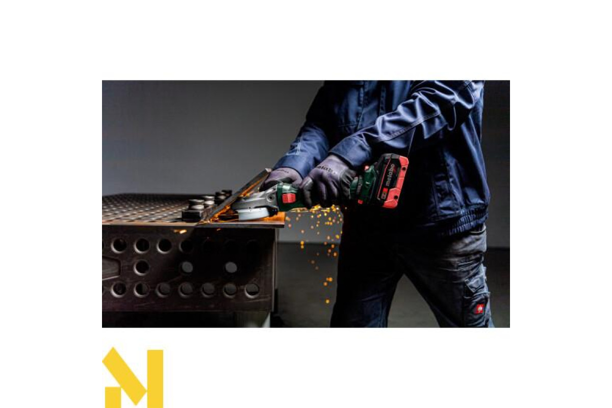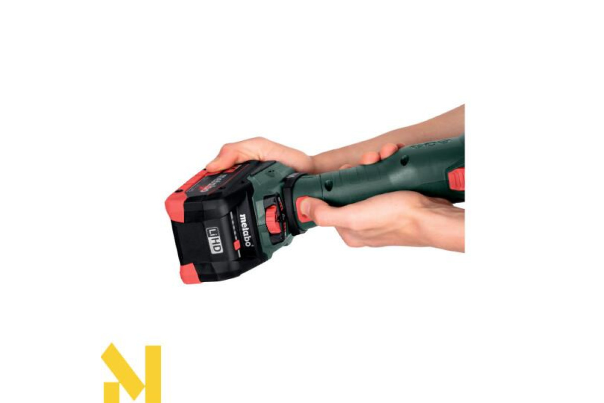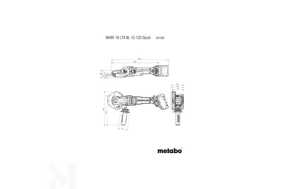 Каркас Metabo WVBF 18 LTX BL 15-125 Quick постачається без акумуляторних батарей та зарядного пристрою. Спеціалізований інструмент для шліфувальних робіт у гострих кутах до 43°.