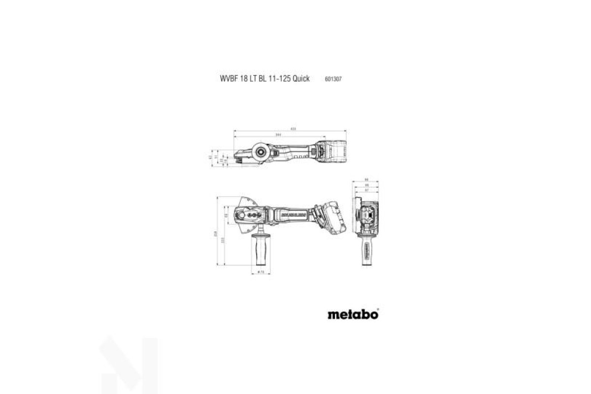 Каркас Metabo WVBF 18 LT BL 11-125 Quick постачається без акумуляторних батарей та зарядного пристрою. Спеціалізований інструмент для шліфувальних робіт у гострих кутах до 43°.