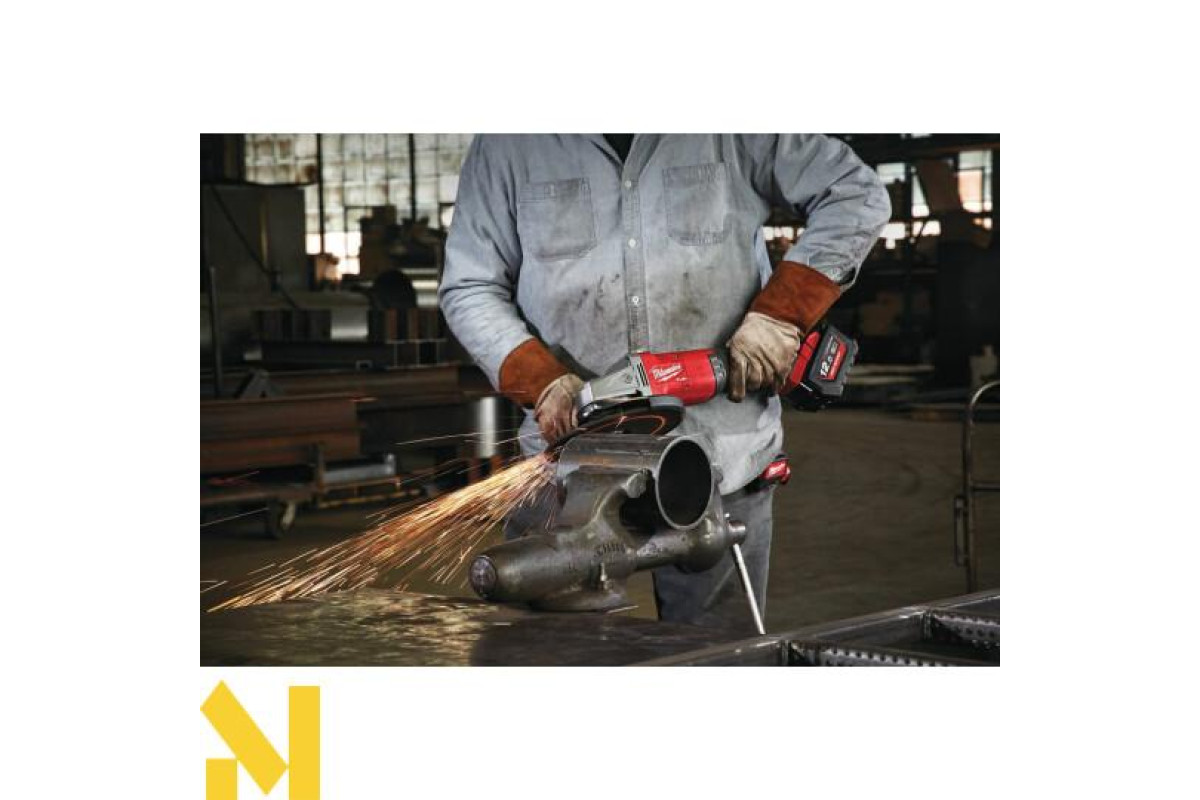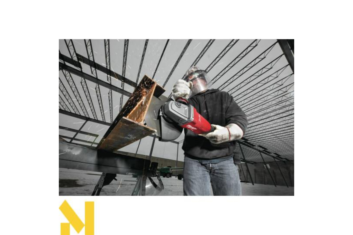 Перша у світі велика кутошліфувальна машина, що працює на одному 18 В акумуляторі, легше ніж мережевий інструмент, що пропонує потужність достатню для шліфування і тривалий час роботи, до 68 різів 42 мм труби з нержавіючої сталі на одному заряді акумулятора
