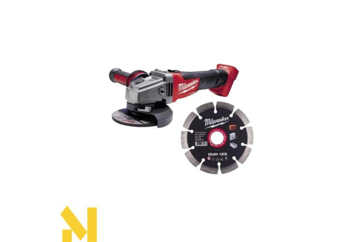 M18FSAG125X: акумуляторна кутова шліфувальна машина, порівнянна з кутовою шліфувальною машиною потужністю 1200 Вт. Зменшений розмір редуктора та менший кут кріплення акумулятора - для кращого балансу та ергономіки порівняно з попередньою моделлю. Система швидкої заміни FIXTEC™ для заміни дисків без інструментів.