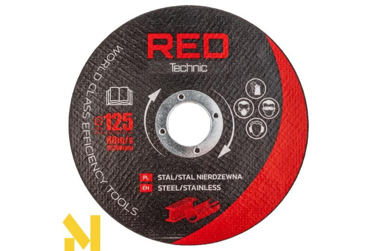 Диск відрізний по металу. Абразив, зв'язаний синтетичною смолою таармований склотканиною. Надзвичайно міцні абразивні зерна з оксиду алюмінію відповідають за високу ефективність різання матеріалу та забезпечуютьпродовжений термін служби інструменту.Диск призначений для швидкого різання елементів з конструкційної сталі, листового металу, труб і профілів.