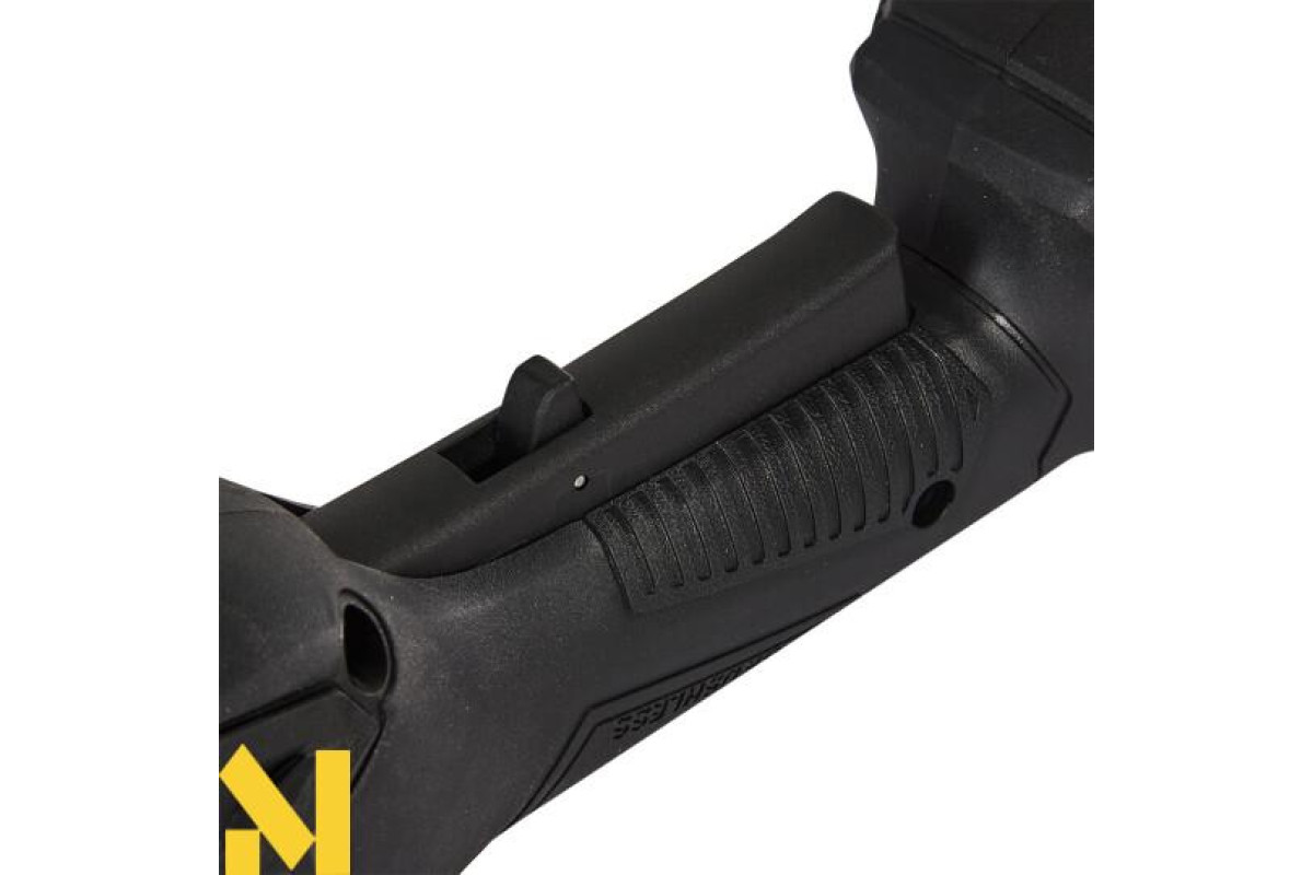 Вбудована безпечна кнопка ввімкнення забезпечує додатковий захист від випадкового ввімкнення інструменту, забезпечуючи безпеку під час роботи. Ергономічна рукоятка дає змогу зручно керувати інструментом і знижує стомлюваність під час роботи.