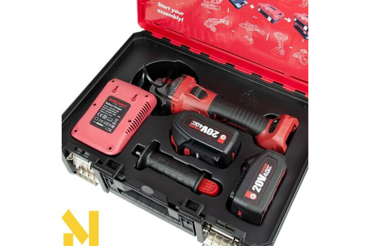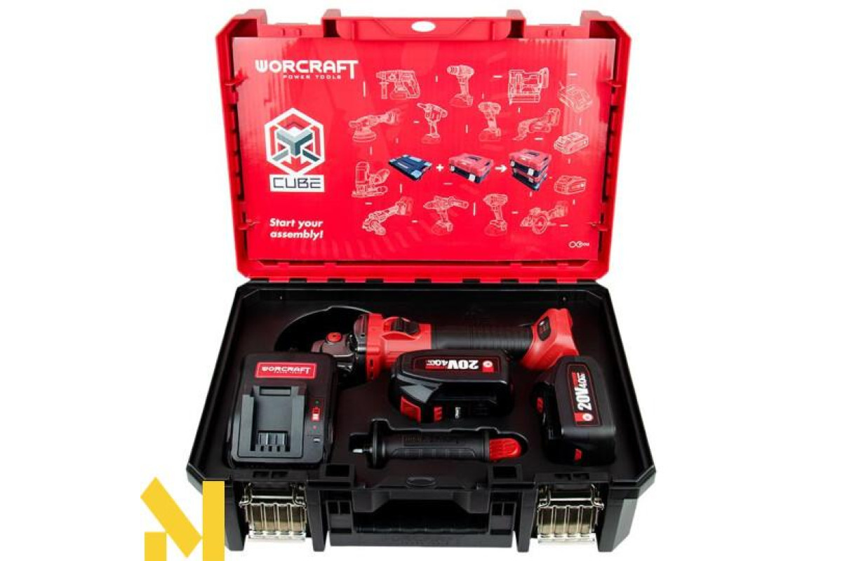 Документація Болгарка (кутова шліфмашина) акумуляторна Worcraft CAGS-20LiBS-125 + АКБ CLB-20V-4.0H 2 шт + ЗП CLC-20V-2.4HB + Кейс XCUBE003