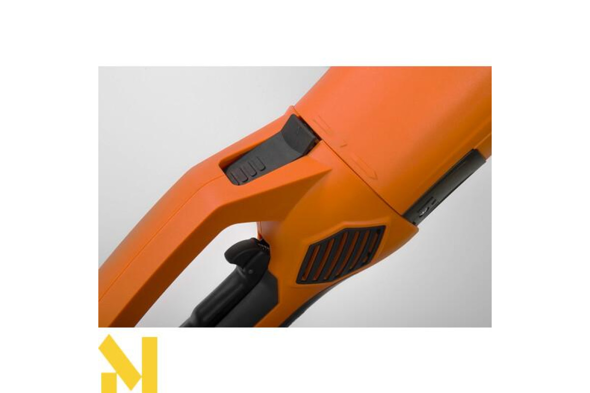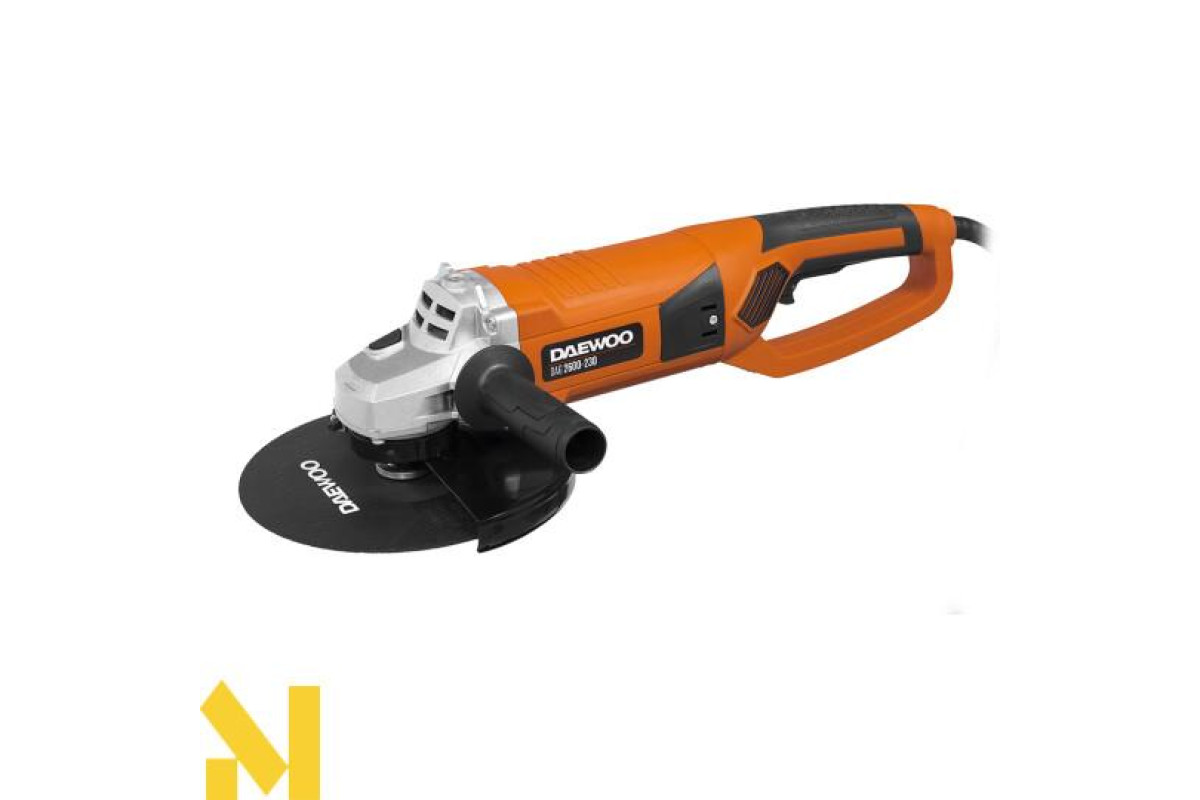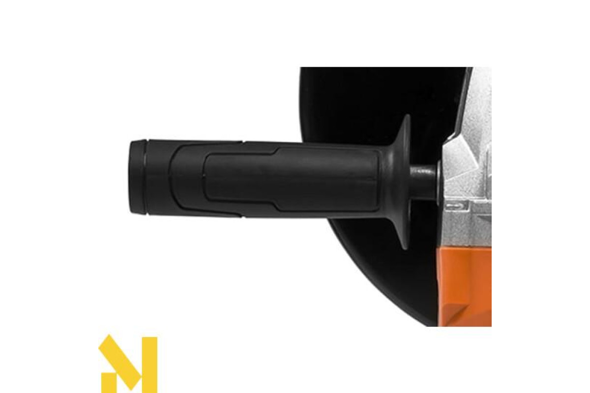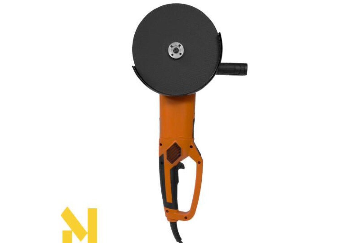 Потужна кутова шліфувальна машина з діаметром диска 230 мм може працювати з різними матеріалами. Електродвигун досягає швидкості обертання 6500 об/хв. Плавний пуск зменшує навантаження на двигун, подовжуючи термін служби інструменту. Зміна положення основної ручки дозволяє працювати у важкодоступних місцях.