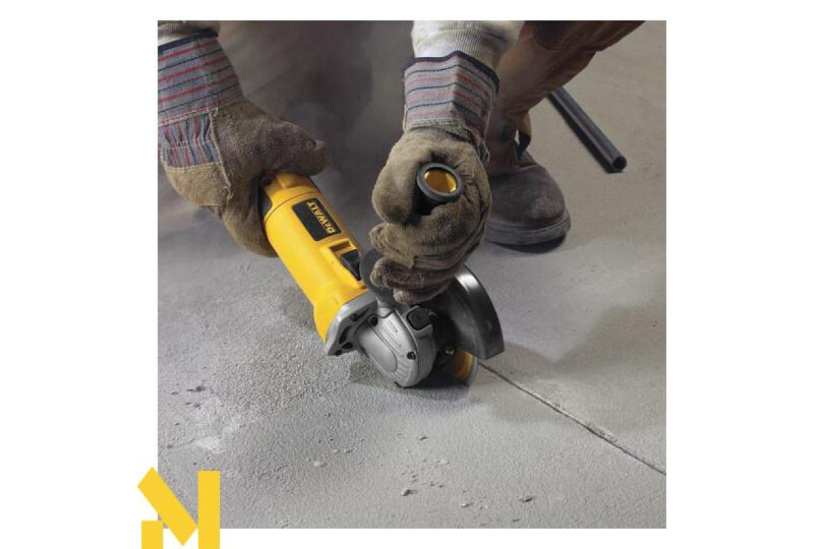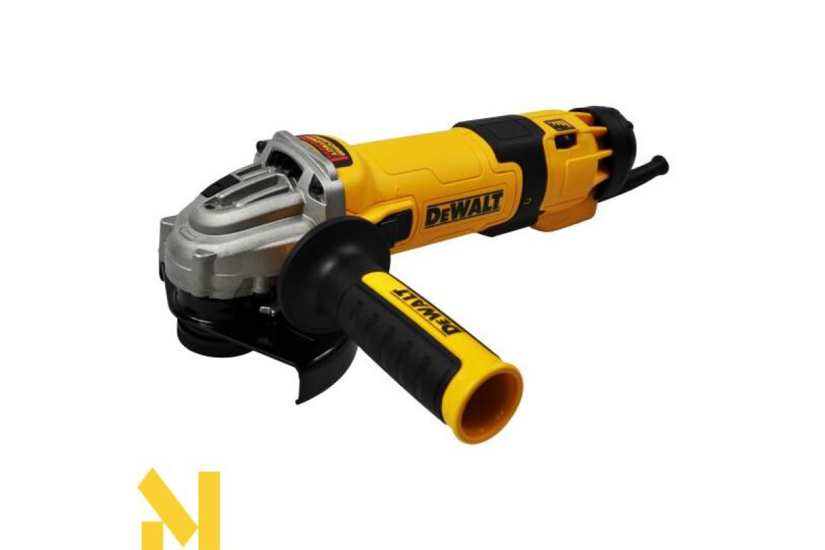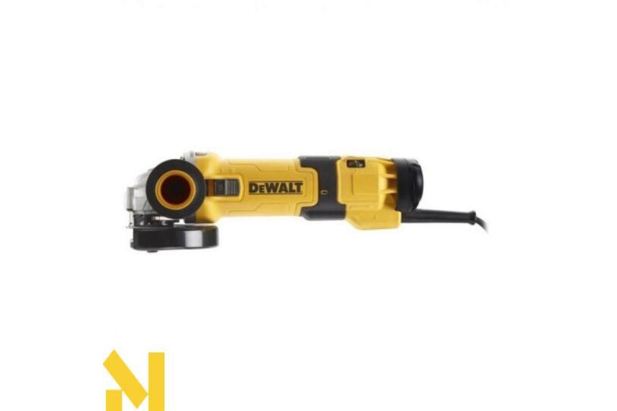 Кутова шліфувальна машина DeWalt DWE4257 - це хороший вибір для професіоналів, з двигуном 1500 Вт і регульованою швидкістю обертання в діапазоні 2800-10500 об/хв дозволяє обробляти різні матеріали. Вона має можливість працювати в різних режимах роботи, враховуючи встановлені диски, це забезпечує електронне регулювання швидкості. Крім цього є нульовий вимикач напруги. Він не дає запуститися інструменту при включенні його в мережу, якщо натиснута кнопка старту. Для запуску необхідно встановити вимикач в початкове положення. Варто зазначити, що мотор добре захищений від перегріву. Оскільки в разі збільшення його температури, автоматично зменшується потужність, поки він не охолоне. Крім цього є сучасна система пиловидалення, яка відбирає абразивні частинки з повітря, що проходить через двигун. А завдяки обмотці статора з прямими виводами підвищується надійність механізму. Виробники подбали і про безпеку. Зокрема обладнали болгарку моментною муфтою, що дозволило вберегти користувача від зворотного удару, в разі заклинювання робочого кола. Ще слід згадати про щітки які самовідключаються. Вони також захищають якір від пошкодження, навіть після закінчення свого терміну служби. До того ж особливість форми щіткотримача, запобігає зависання щіток в складних умовах роботи. Крім цього з огляду на нову конструкцію фланців, тепер потрібно затратити менше зусиль на заміну дисків.