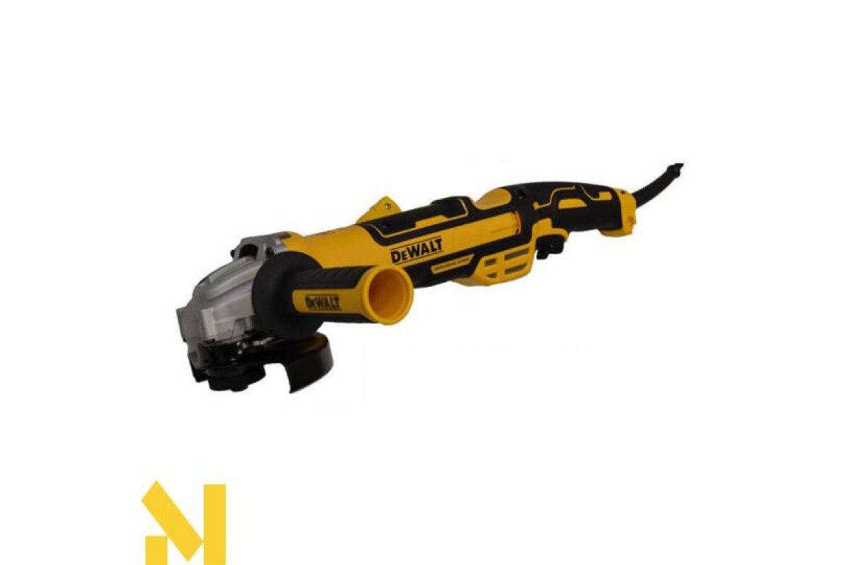 - DWE4377 мережева кутова шліфувальна машина DeWALT з "задньої" рукояткою і регулюванням обертів на базі високотехнологічного безщіткового двигуна потужністю 1700 Вт.