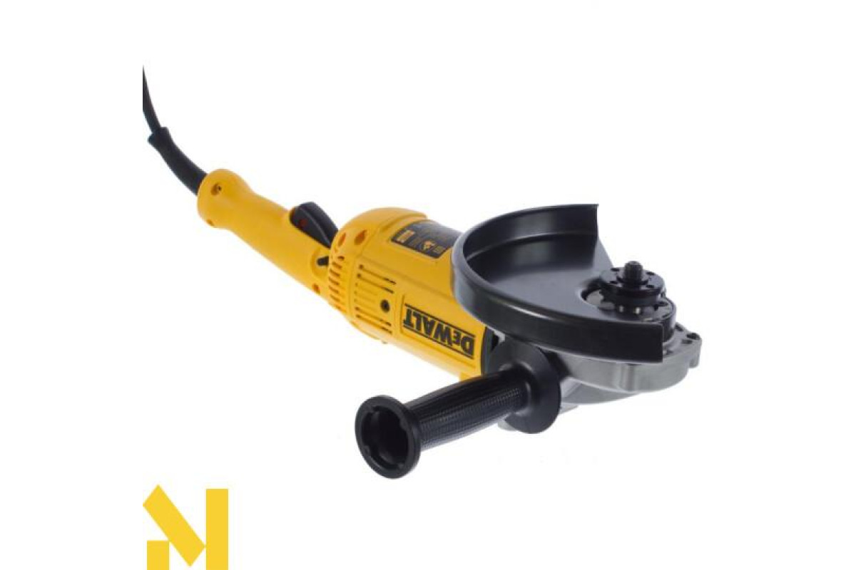 Кутова шліфувальна машина Dewalt DWE 492 оснащена потужним двигуном, що забезпечує високу продуктивність. Функція плавного пуску робить роботу більш точною і комфортною. Додаткову рукоятку, в залежності від уподобань оператора, можна встановити справа або зліва. Диск діаметром 230 мм сприяє ефективній обробці великих поверхонь.