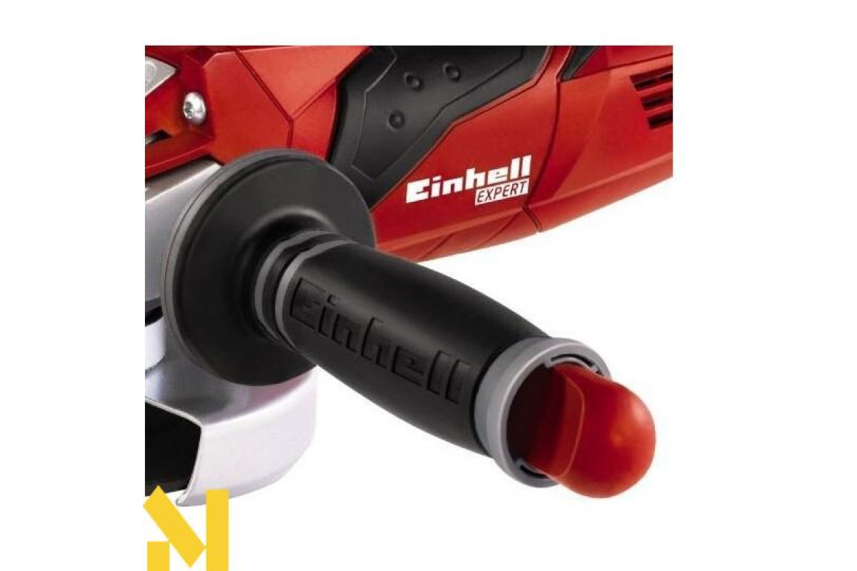 Ергономічно м'які форми ручки кутової шліфувальної машини Einhell TE-AG 125/750 і додаткова регульована рукоятка забезпечують хорошу фіксацію в руках і додатковий комфорт. Високий рівень безпеки також забезпечується надійним захисним кожухом.