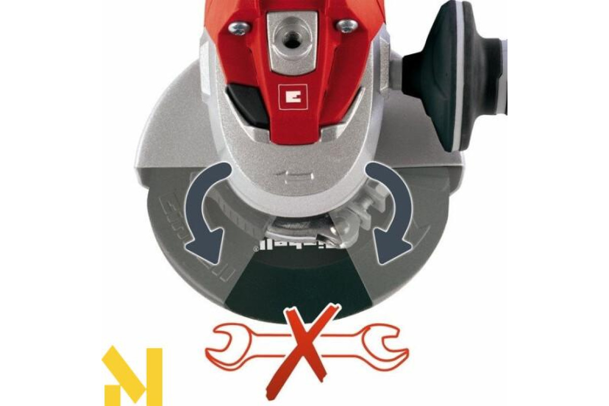 Ключ для фланцевої гайки знаходиться в спеціальному відсіку в додатковій рукоятці. Кутова шліфувальна машина Einhell TE-AG 230 також практична і після виконання робіт, а кабельний затиск забезпечує компактне і надійне зберігання.