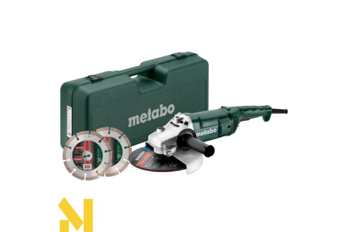 Болгарка Metabo WE 2200-230 Set - поставляється в більш широкій комплектації, в яку входять два алмазних диска і пластиковий кейс.