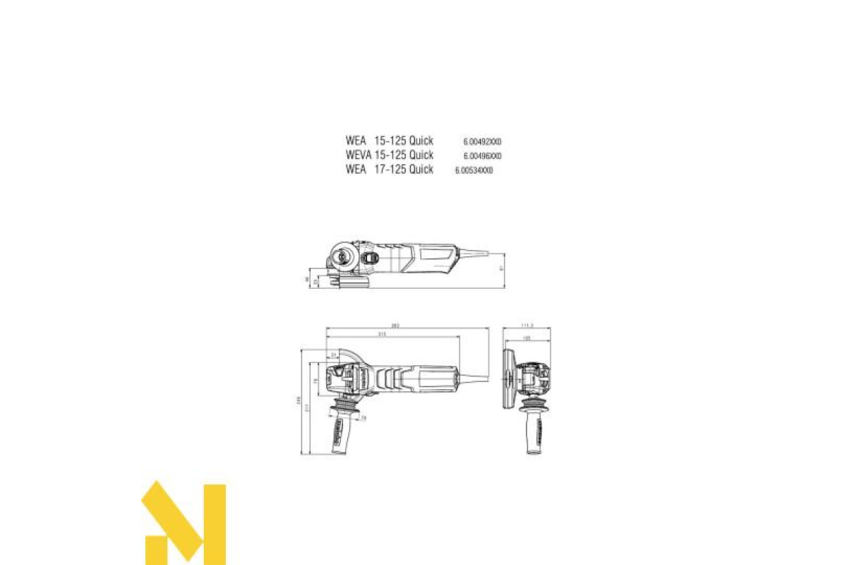 Болгарка Metabo WEA 17-125 Quick перша в світі одноручна кутова шліфувальна машина з двигуном потужність 1700 Ватт. Кращий показник співвідношення потужності до діаметру обхвату корпусу серед компактних УШМ професійного класу.